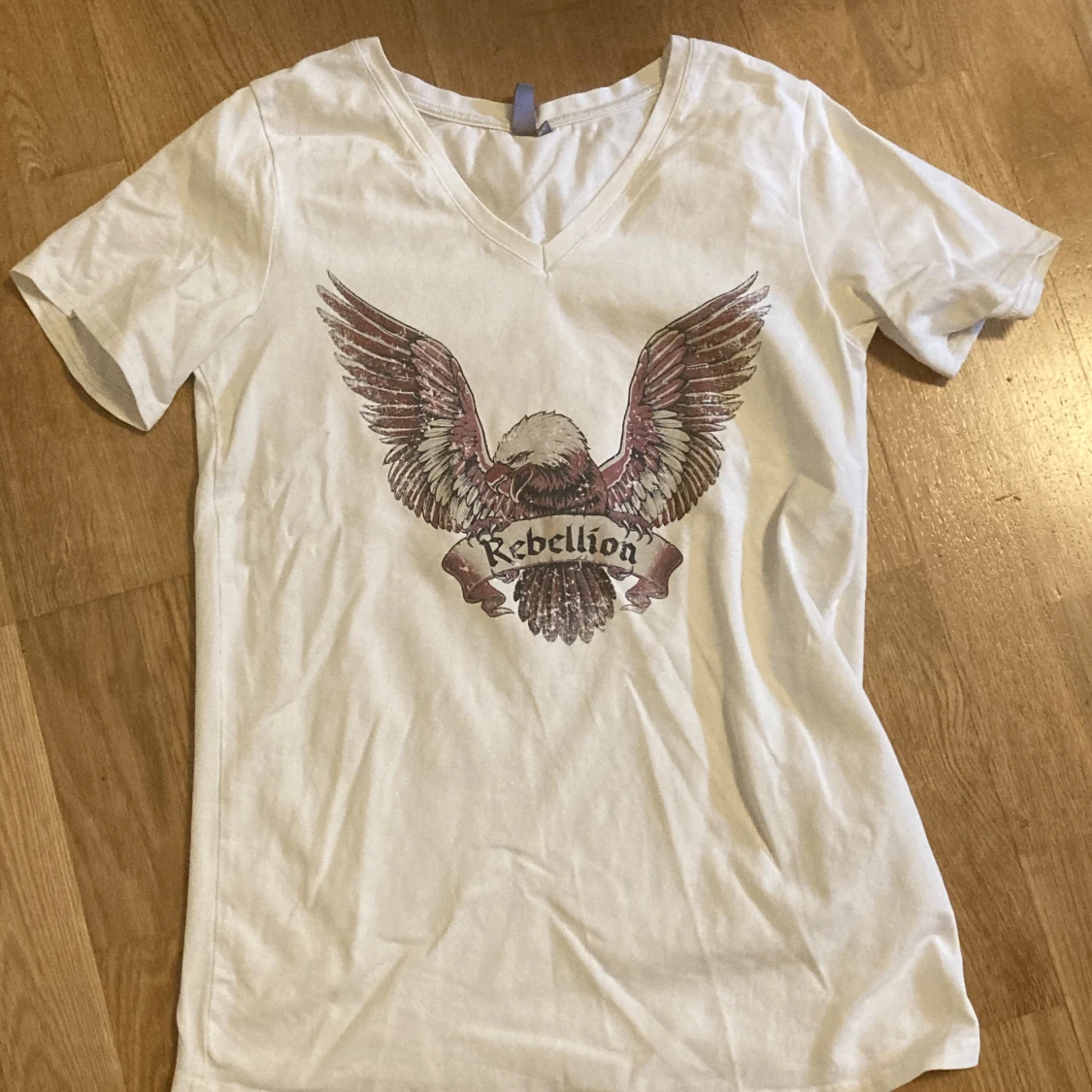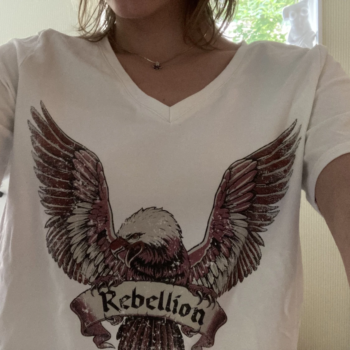 Vit t-shirt med coolt tryck. Aldrig använd :) står storlek s i tröjan men den är ganska stor. Tyget är jättestretchigt