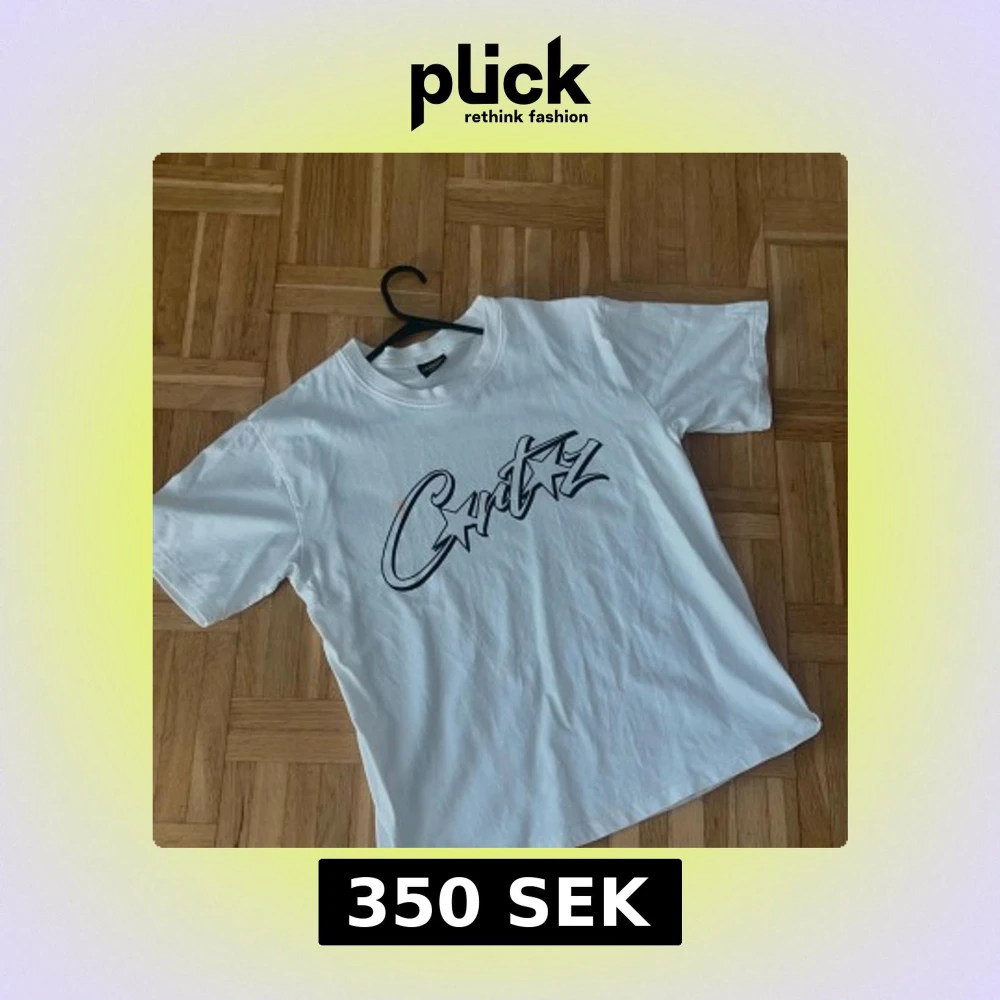 Vit t-shirt från Corteiz med svart grafiskt tryck och stjärndetaljer på bröstet. Klassisk passform med rund hals och korta ärmar. Perfekt för dig som gillar streetwear och enkel stil.