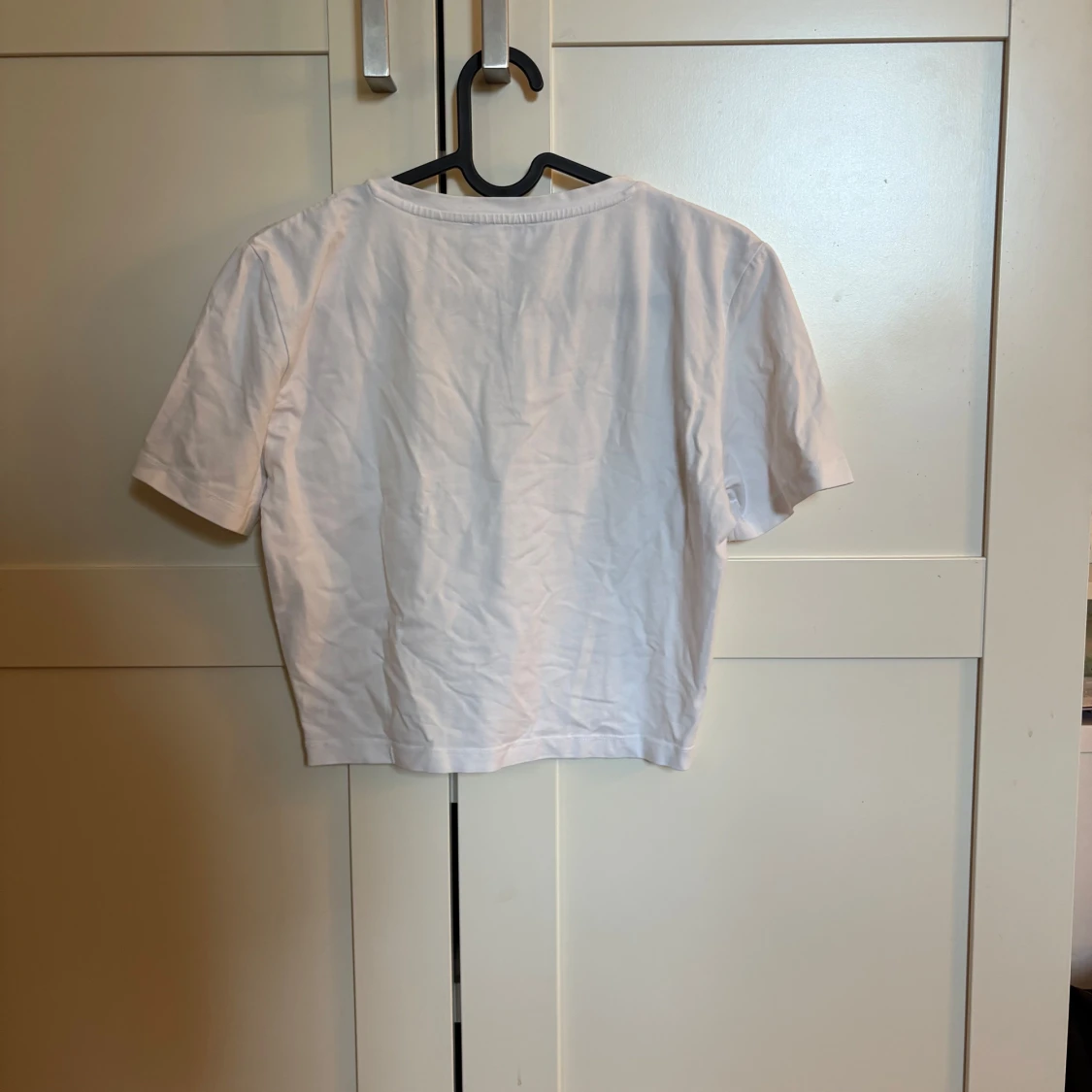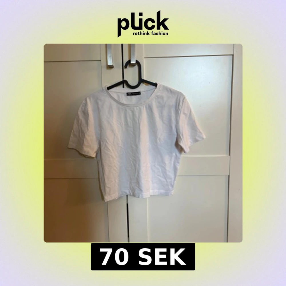 Enkel och stilren vit croppad t-shirt från Zara. Modellen har rund halsringning och korta ärmar.