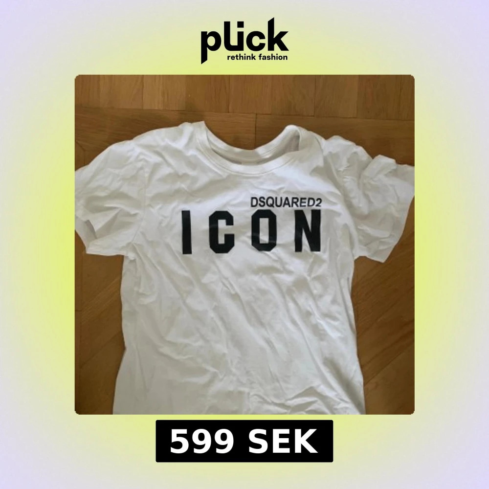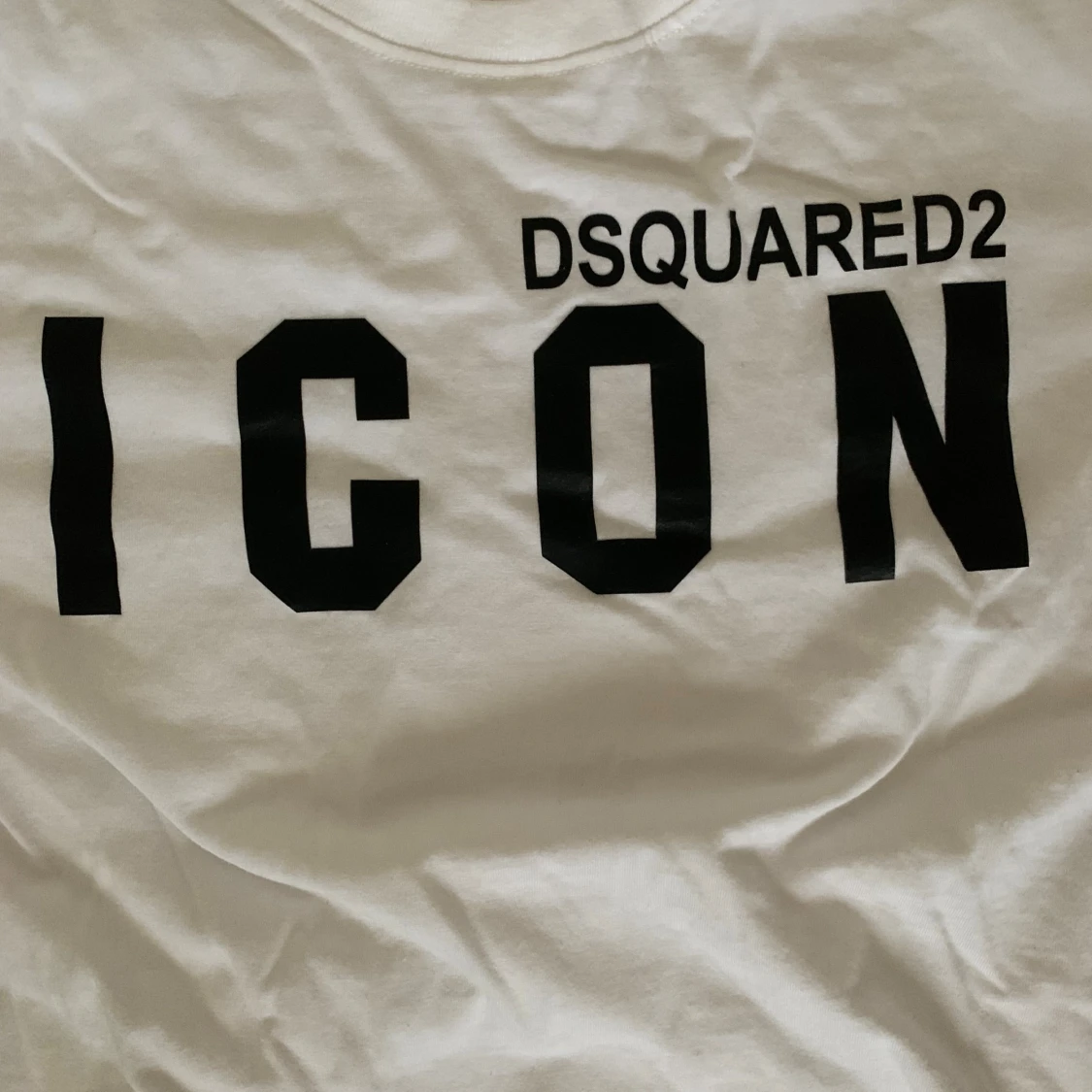 Vit t-shirt från DSQUARED2 med stor svart 'ICON'-text på bröstet och klassisk rund hals.