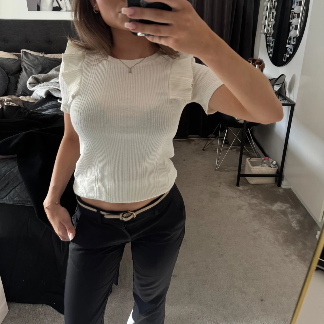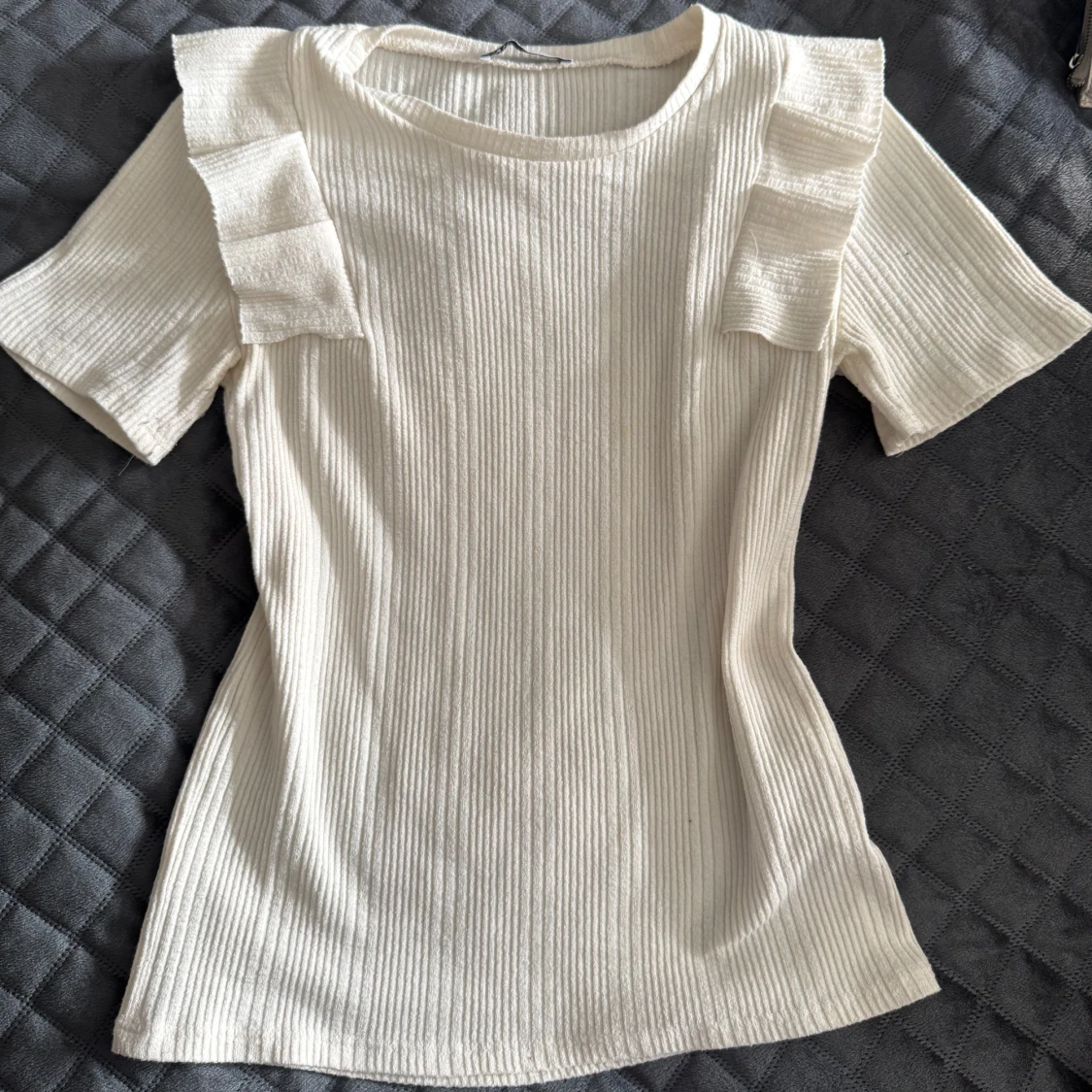 Supersöt vit ribbad topp från Zara!! Säljer pga att jag rensar garderoben🤍(Köp fler än ett plagg ifrån mig och få rabatt)