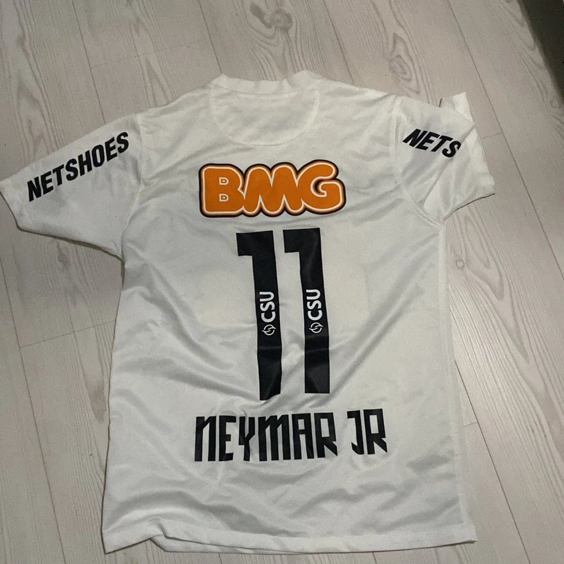 Vit kortärmad fotbollströja från Nike med S.F.C. emblem och sponsorer som BMG och Netshoes. Tröjan har nummer 11 och namn på baksidan. Perfekt för fotbollsfans!