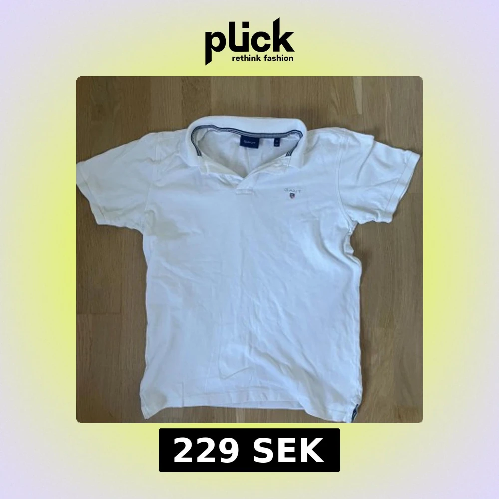 Vit pikétröja från GANT med klassisk krage och broderad logga på bröstet. Tröjan har korta ärmar och blå randig detalj på insidan av kragen. Tillverkad i bomull för en skön och luftig känsla.