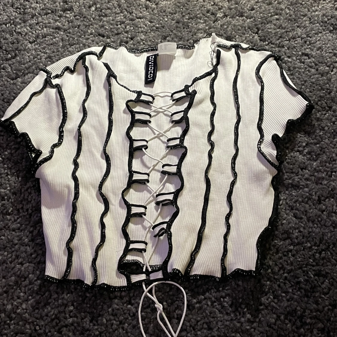 En vit topp med svart snörning. Väldigt showy och festlig. Passar inte bra på mig.❤️ knappt använd