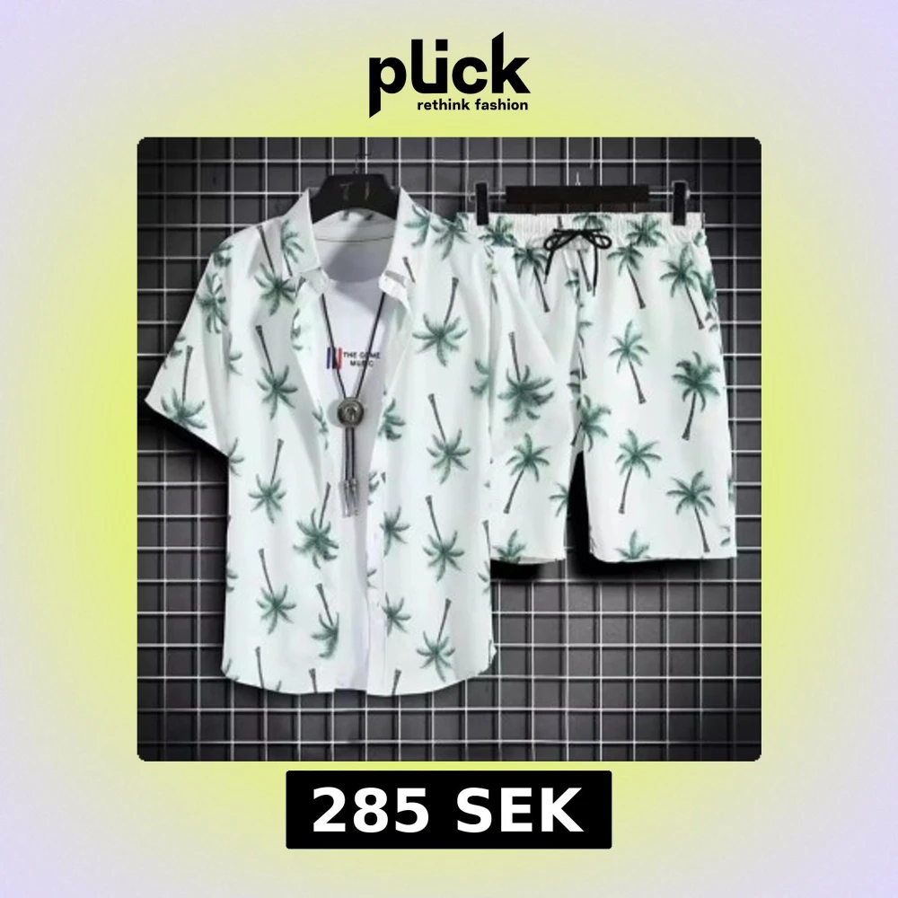 Säljer en vit kortärmad skjorta med grönt palm-mönster. Skjortan har klassisk krage och knappar framtill. Perfekt för sommarens avslappnade dagar och strandhäng. Unik pice.