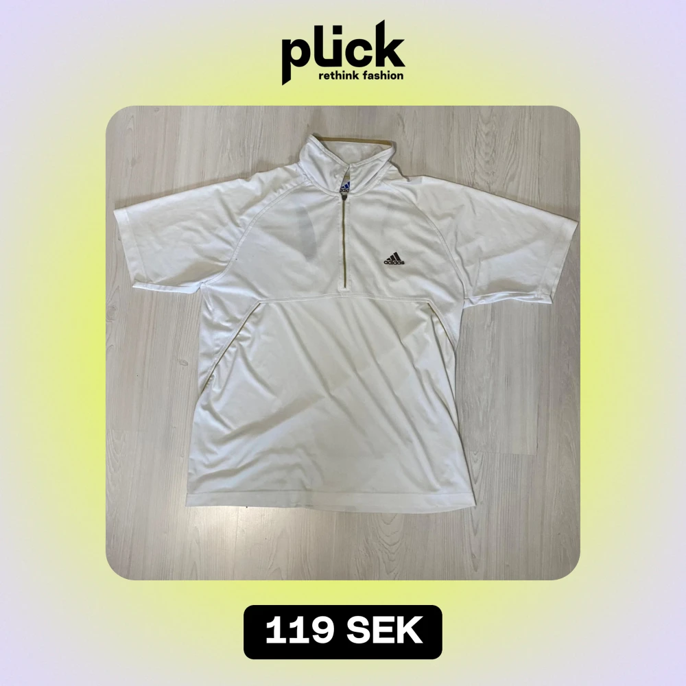 Säljer en vit kortärmad tröja från Adidas med dragkedja och klassiska tre ränder på ryggen. Perfekt för sportiga aktiviteter eller en avslappnad stil. Tröjan har en hög krage och är tillverkad i ett lätt och bekvämt material. Några defekter(se bilder). Priset kan diskuteras!