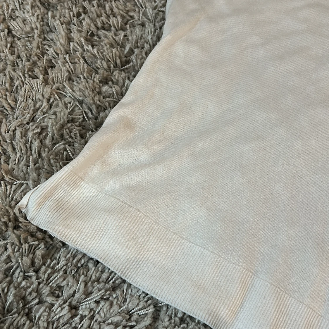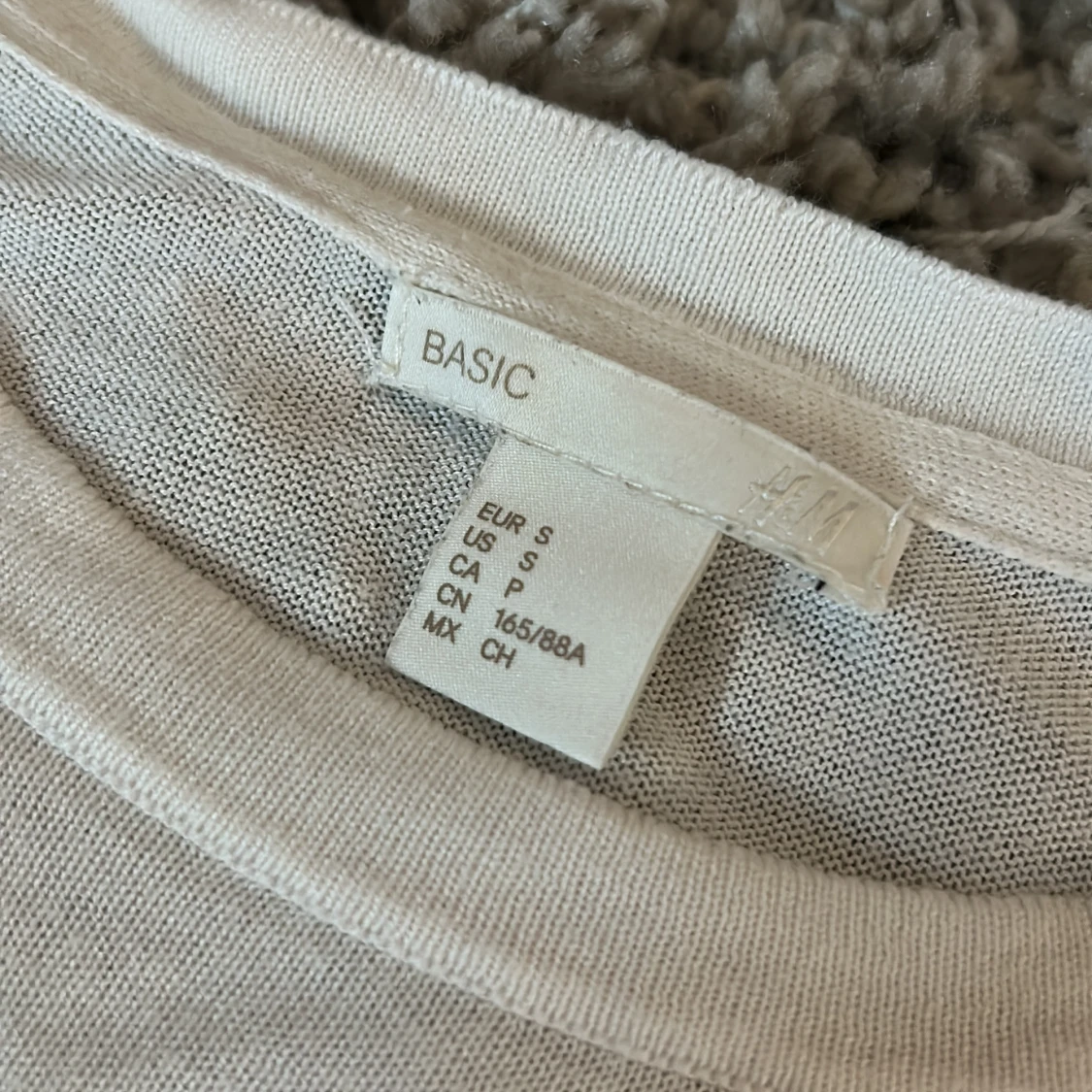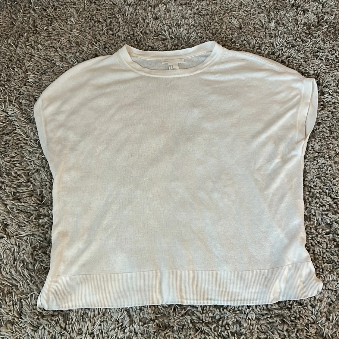 Enkel och stilren vit tröja från H&M BASIC i storlek S. Modellen är rak med korta ärmar och rund halsringning. Tröjan har ribbad kant nedtill och är tillverkad i ett mjukt, tunt material som känns skönt mot huden.