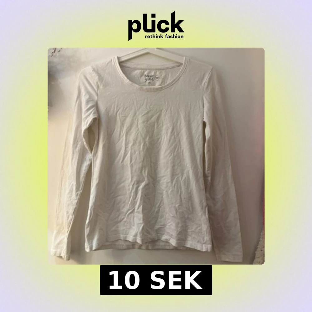 Enkel och stilren vit långärmad tröja från Basic You i ekologisk bomull. Tröjan har rund halsringning och en klassisk passform som funkar till allt. Liten fläck (se bild) finns men inget som syns vid användning.