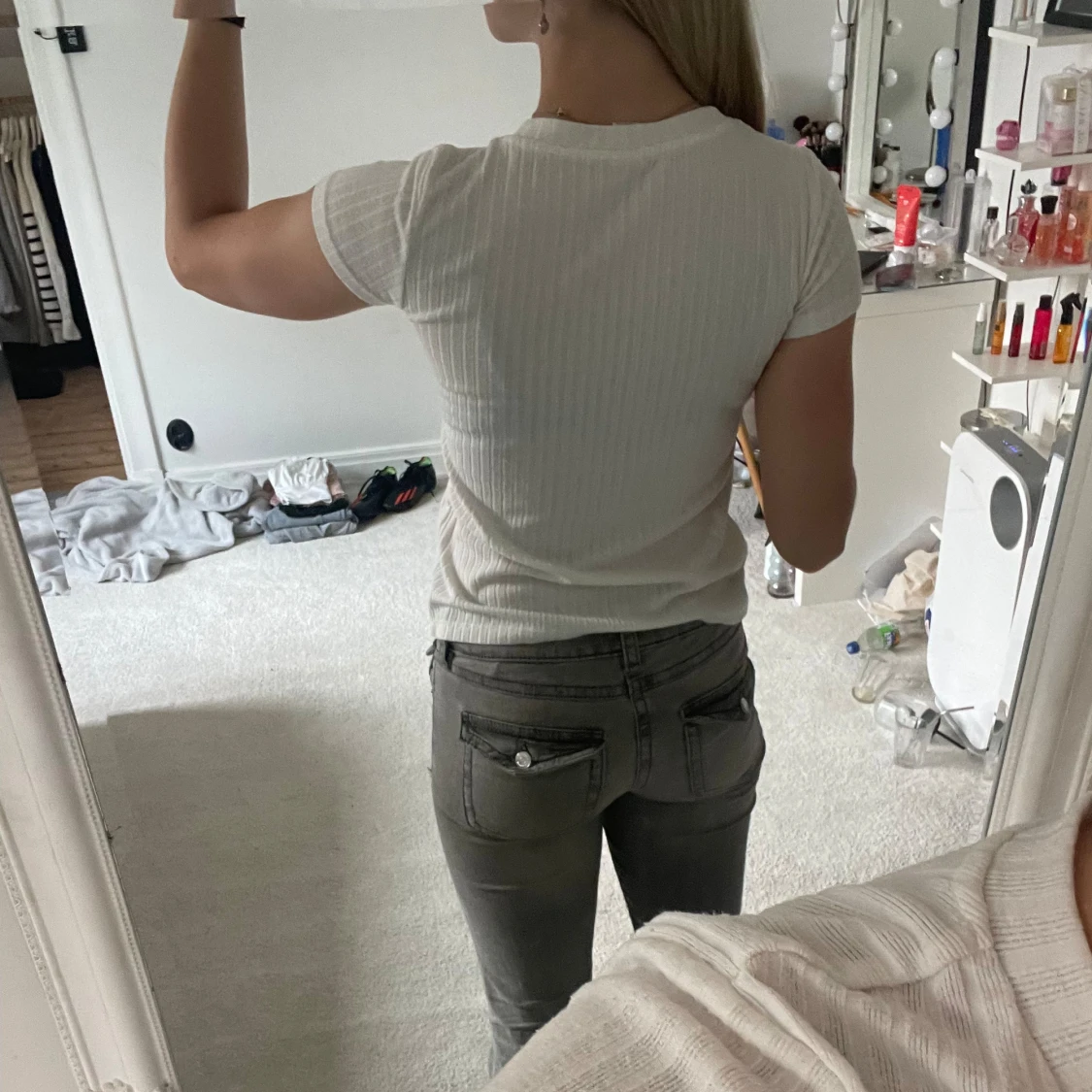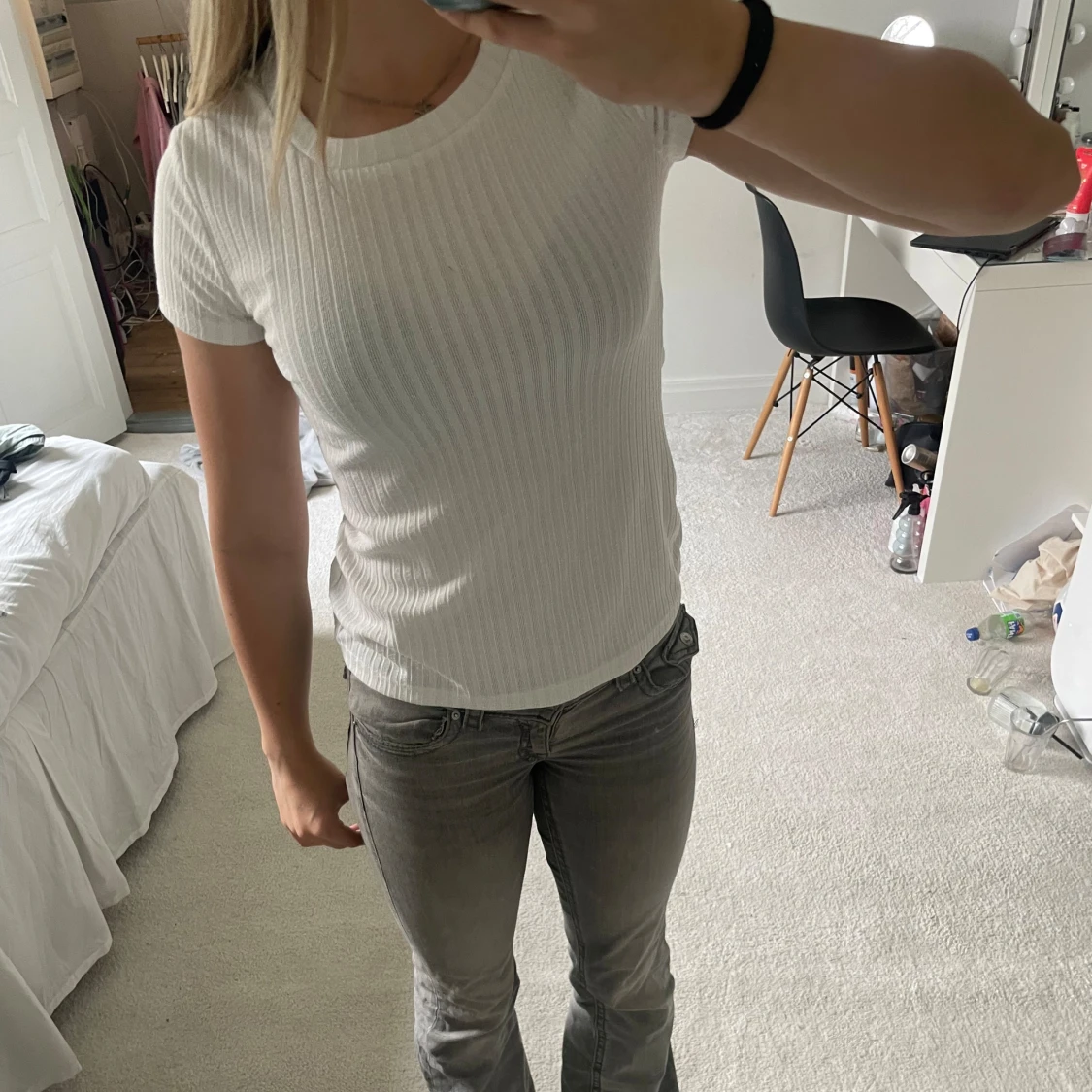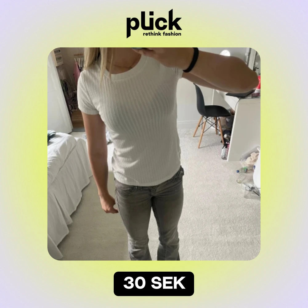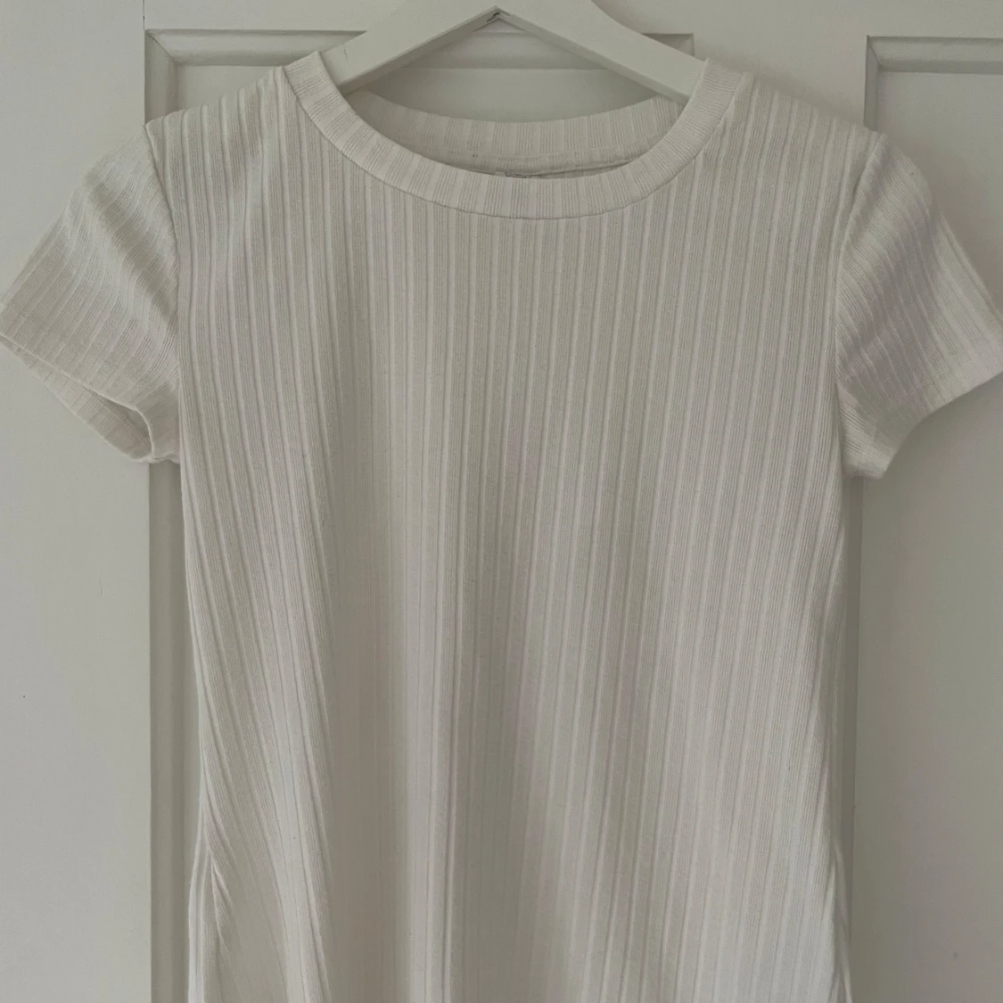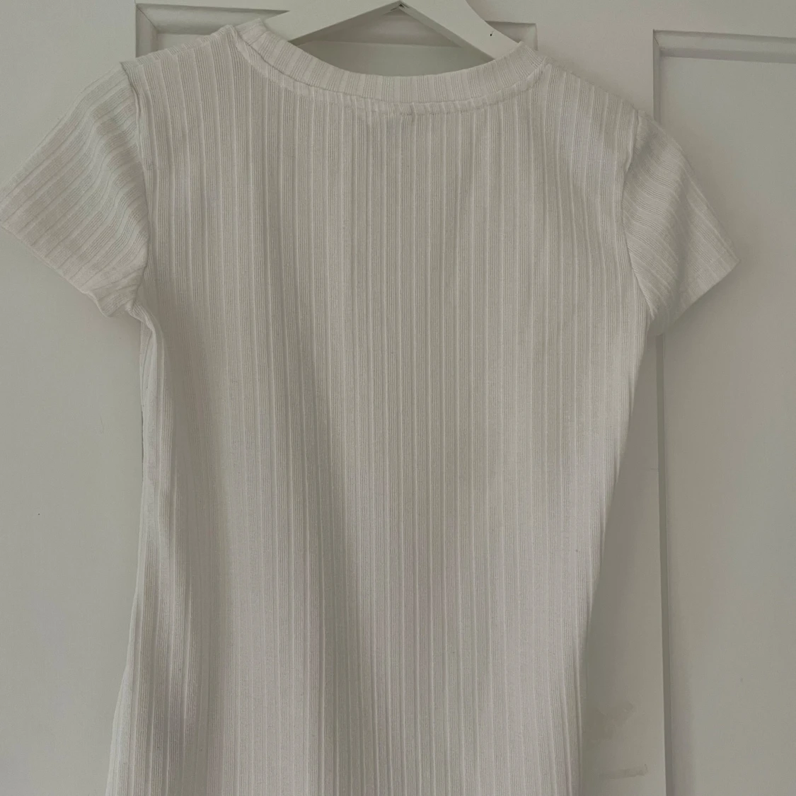 En jättefin vit ribbad t-shirt. Tyvärr kommer den aldrig till användning. Pris går att diskuteras!❤️