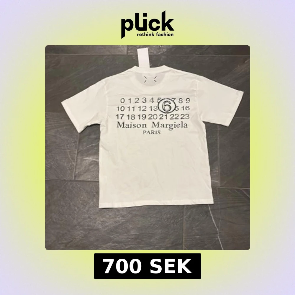 Vit t-shirt från Maison Margiela med svart grafiskt tryck och logga på ryggen.