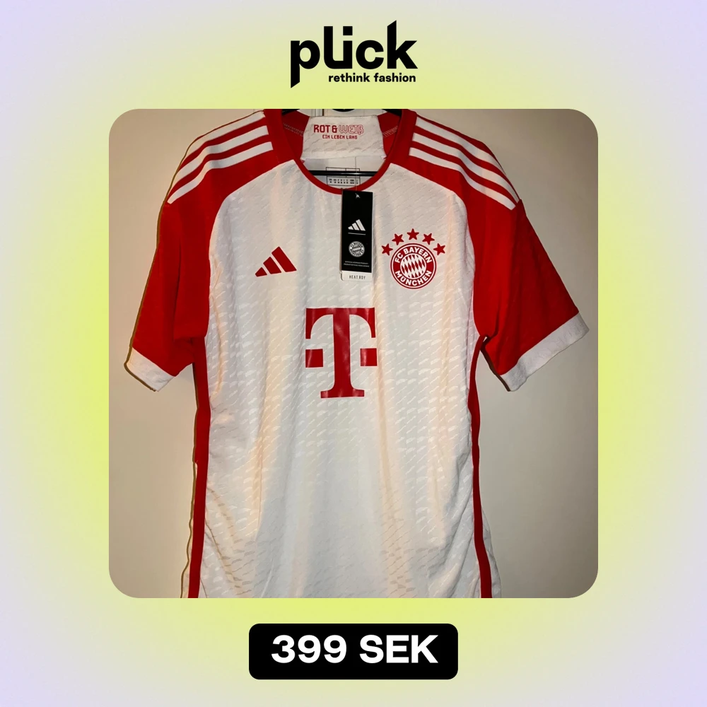 Helt ny och snygg Bayern München fotbollströja i vitt och rött från Adidas. Tröjan har korta ärmar och klubbens logga på bröstet. Perfekt för fans som vill visa sitt stöd! 🏆