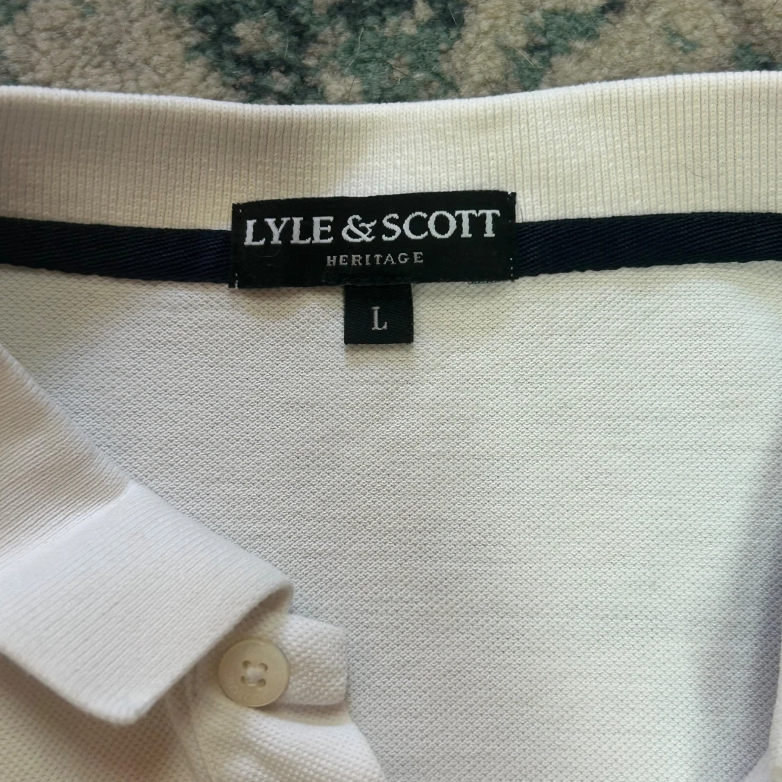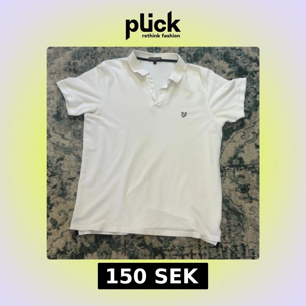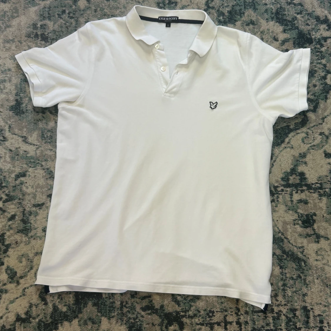 Vit pikétröja från Lyle & Scott i storlek L men passar som M. Klassisk design med krage, knappar och broderad logga på bröstet. Tillverkad i mjuk bomull och har korta ärmar. Perfekt för en clean och stilren look.
