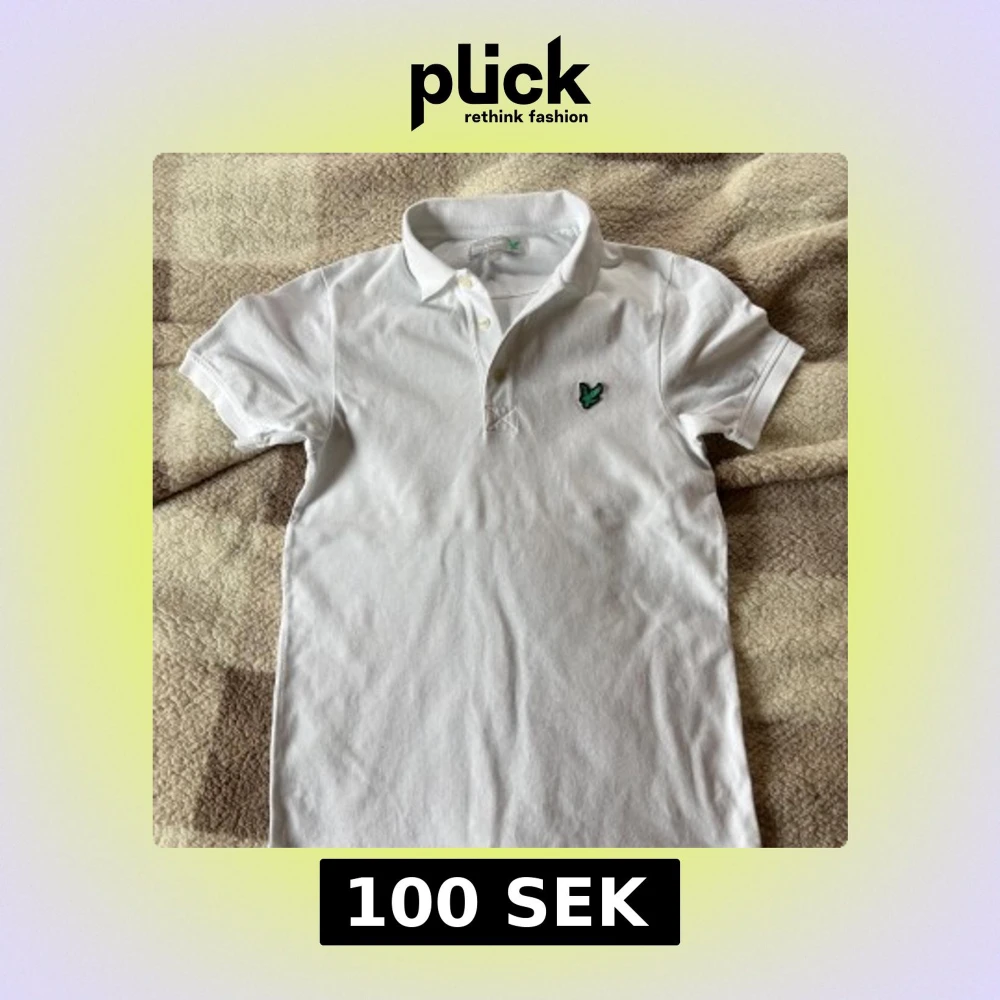 Klassisk vit pikétröja från Lyle & Scott med korta ärmar och krage. Dammodell. Har en knappt syrlig fläck (se sista bilden) därav priset.