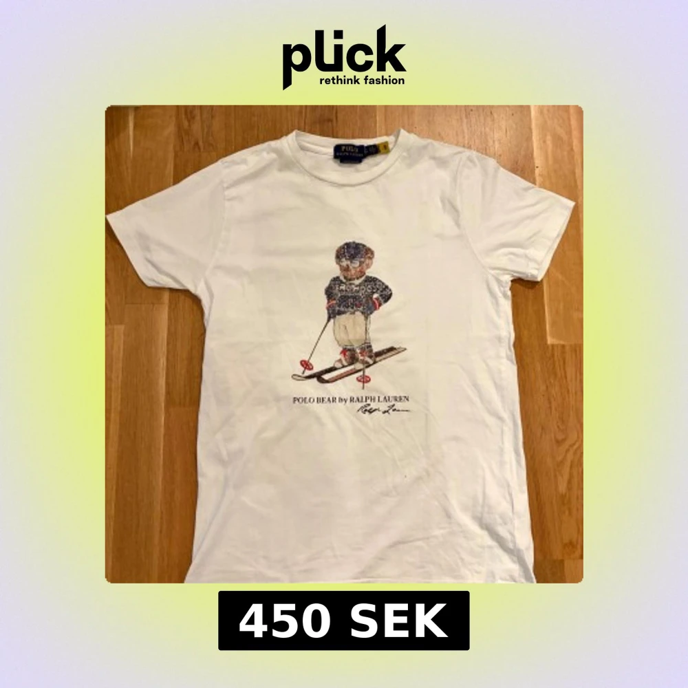Vit t-shirt från Polo Ralph Lauren med ikoniskt Polo Bear-tryck där björnen åker skidor. Klassisk rund hals, korta ärmar och smal passform (custom slim fit). Tillverkad i mjuk bomull, perfekt för en chill och stilren look.