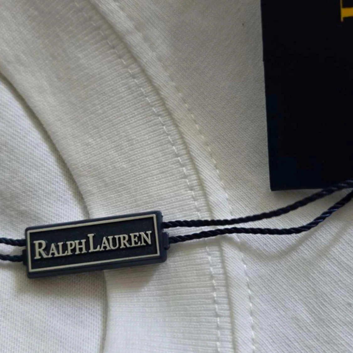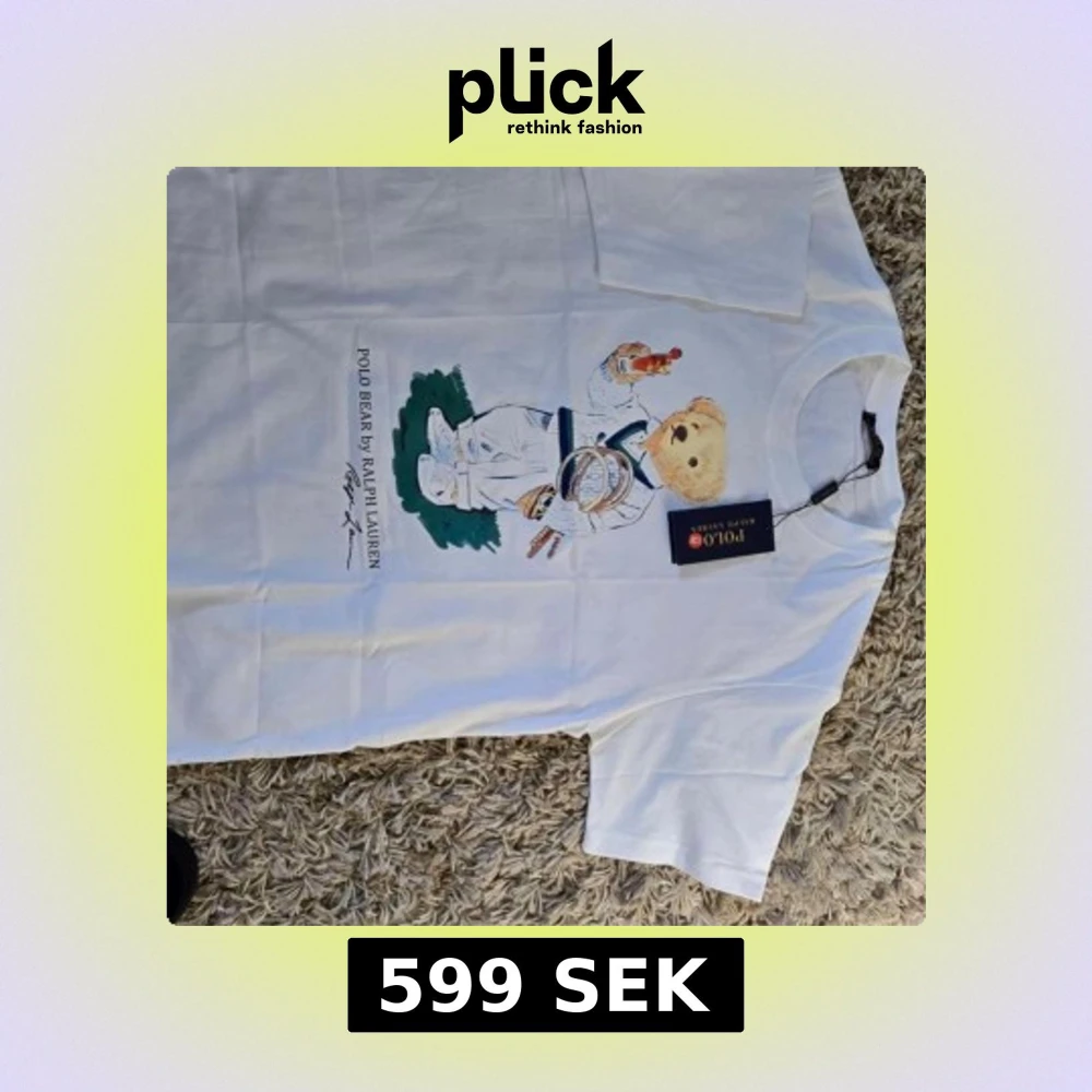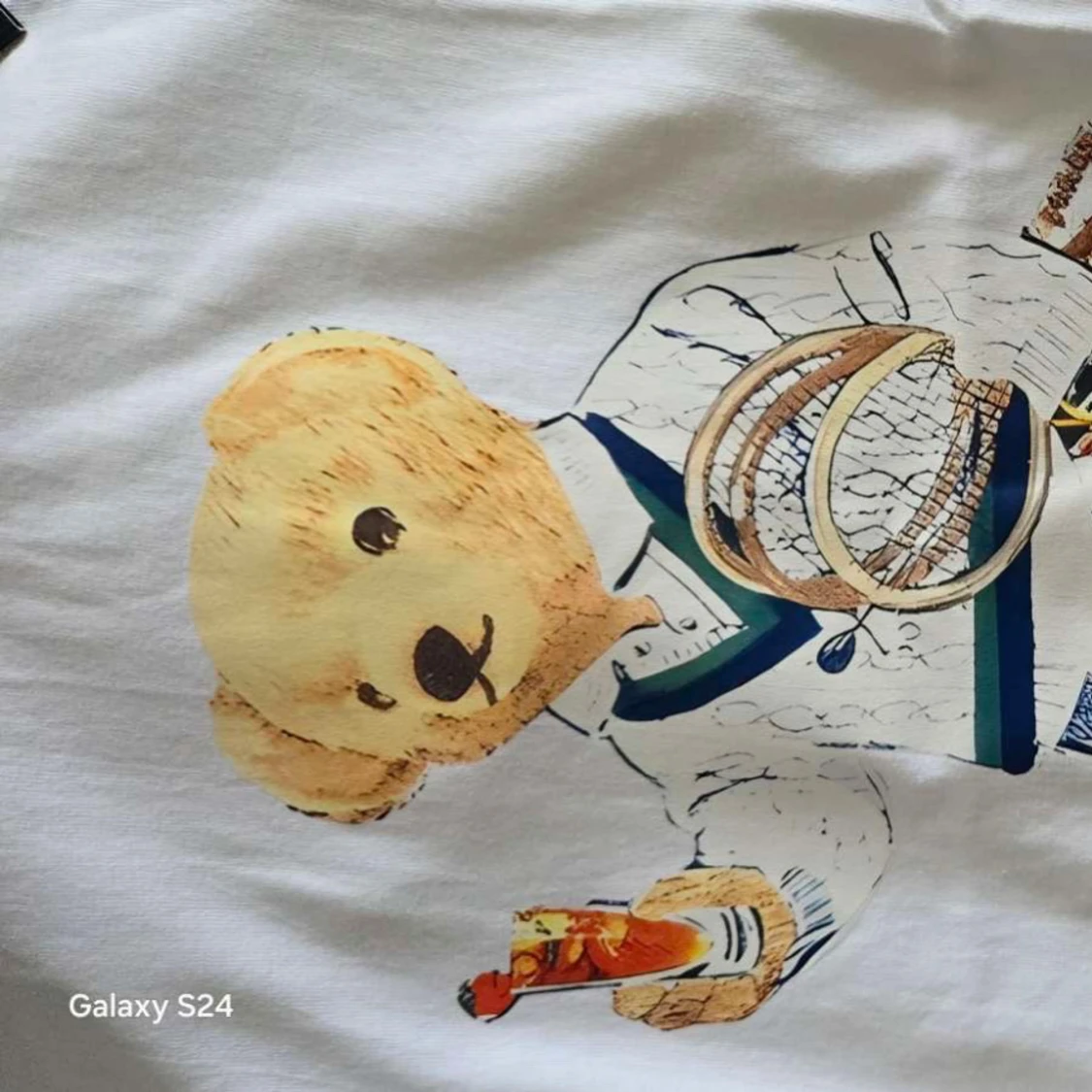Vit t-shirt från Ralph Lauren med Polo Bear-tryck på framsidan där björnen håller tennisracketar och en dryck. Klassisk rund hals och korta ärmar. Mjuk bomullskvalitet och snygg casual vibe. Perfekt för dig som gillar sportiga och ikoniska prints.