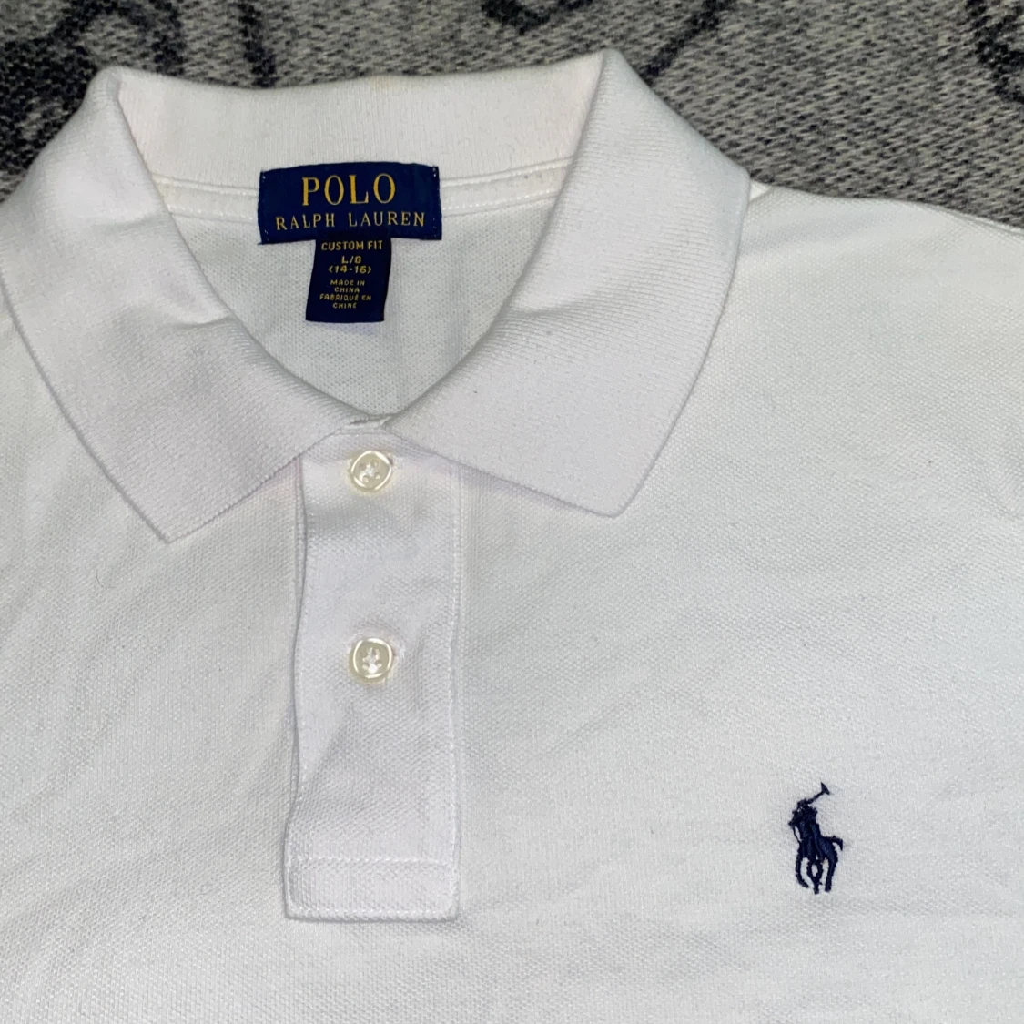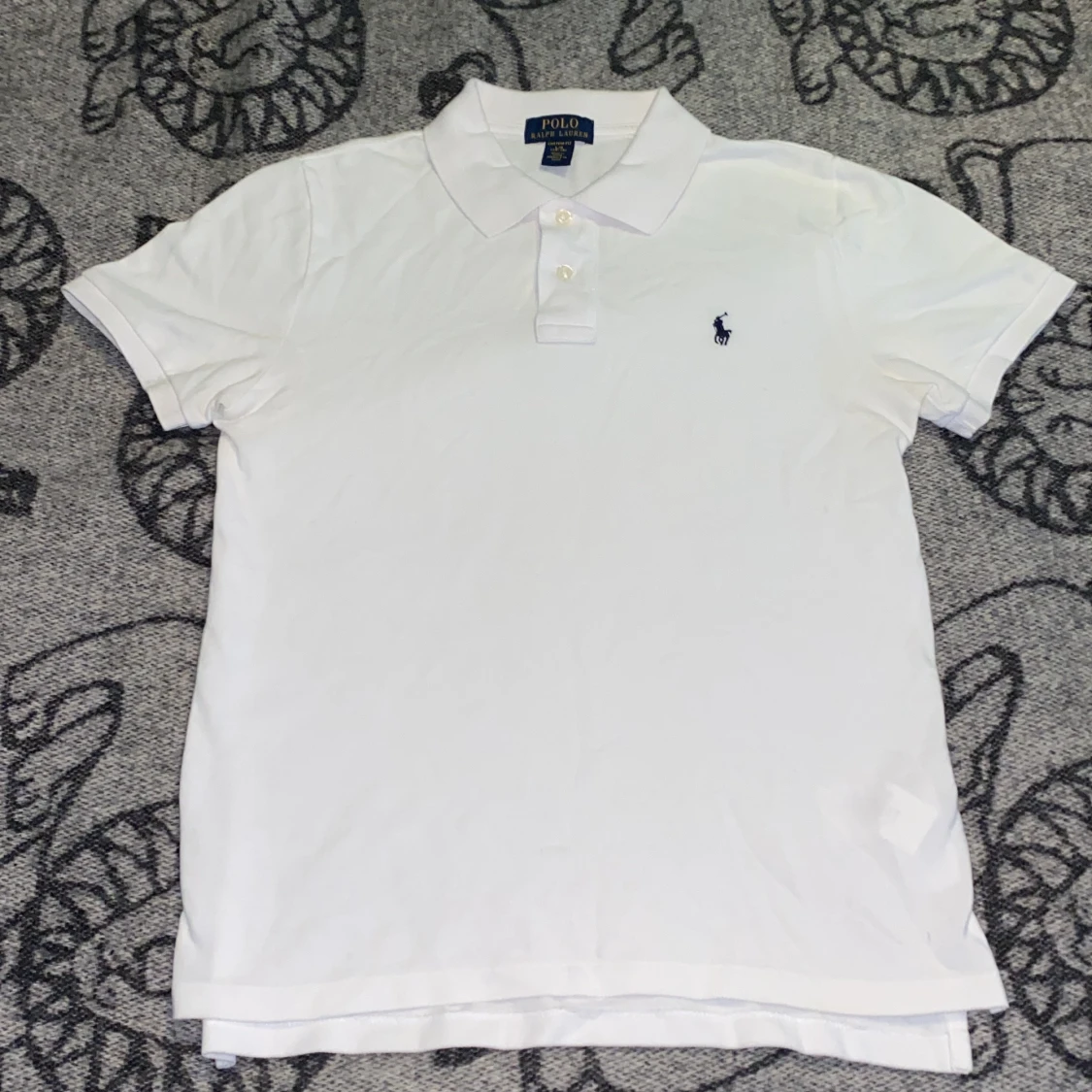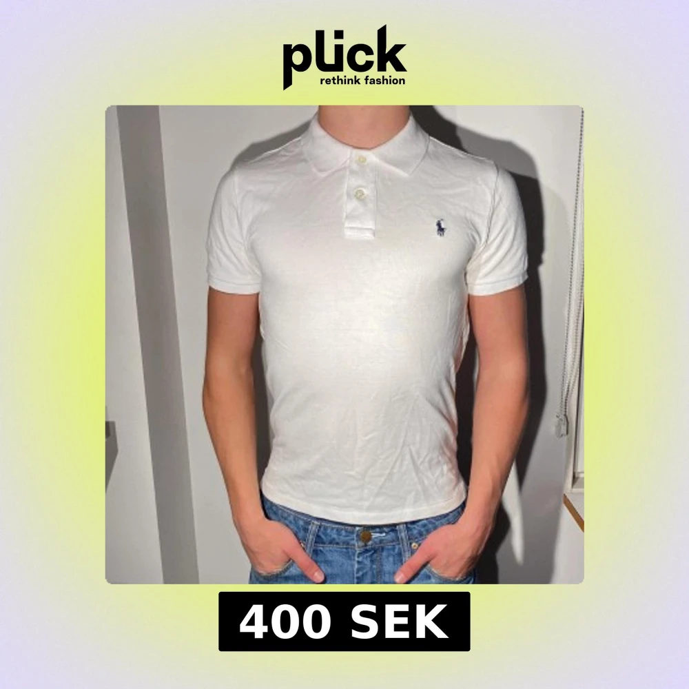 En sprillans ny äkta raplh lauren piké, helt oanvänd. Finns inga skador eller defekter. Storleken är 14-16 år Kille. Modellen är 175cm, 64 kg