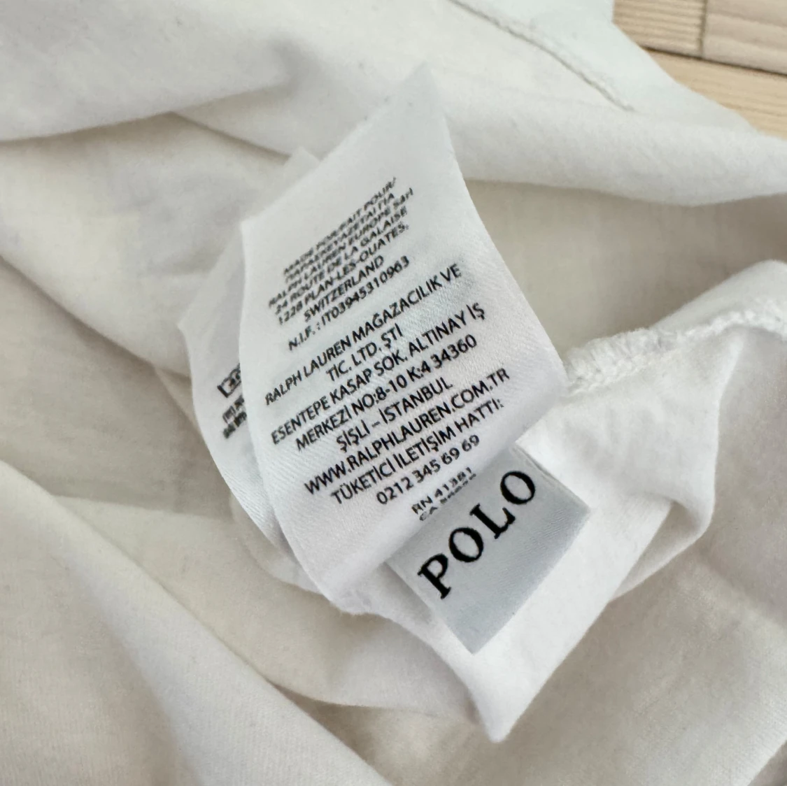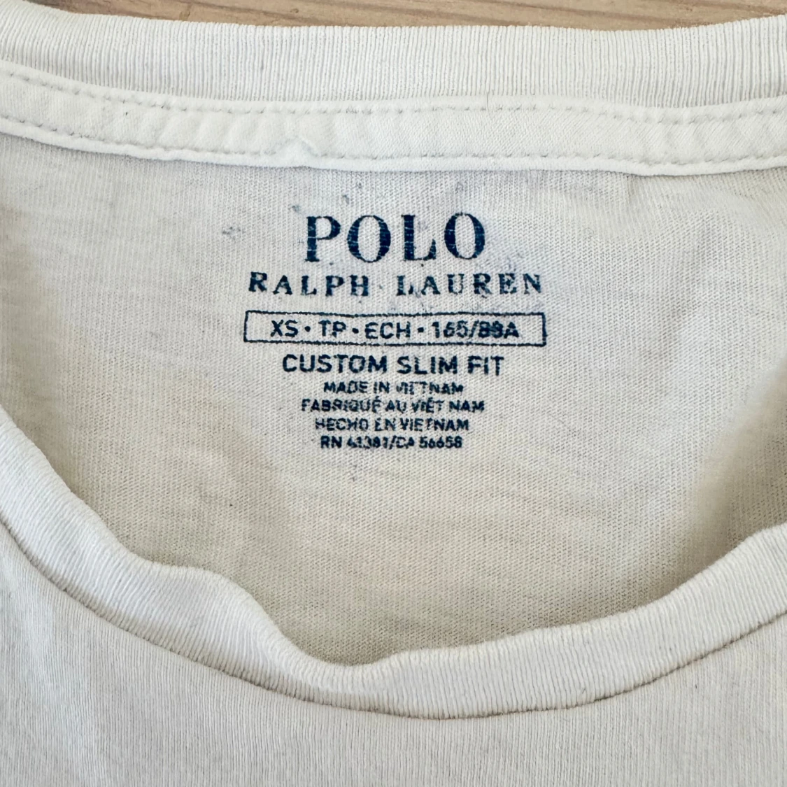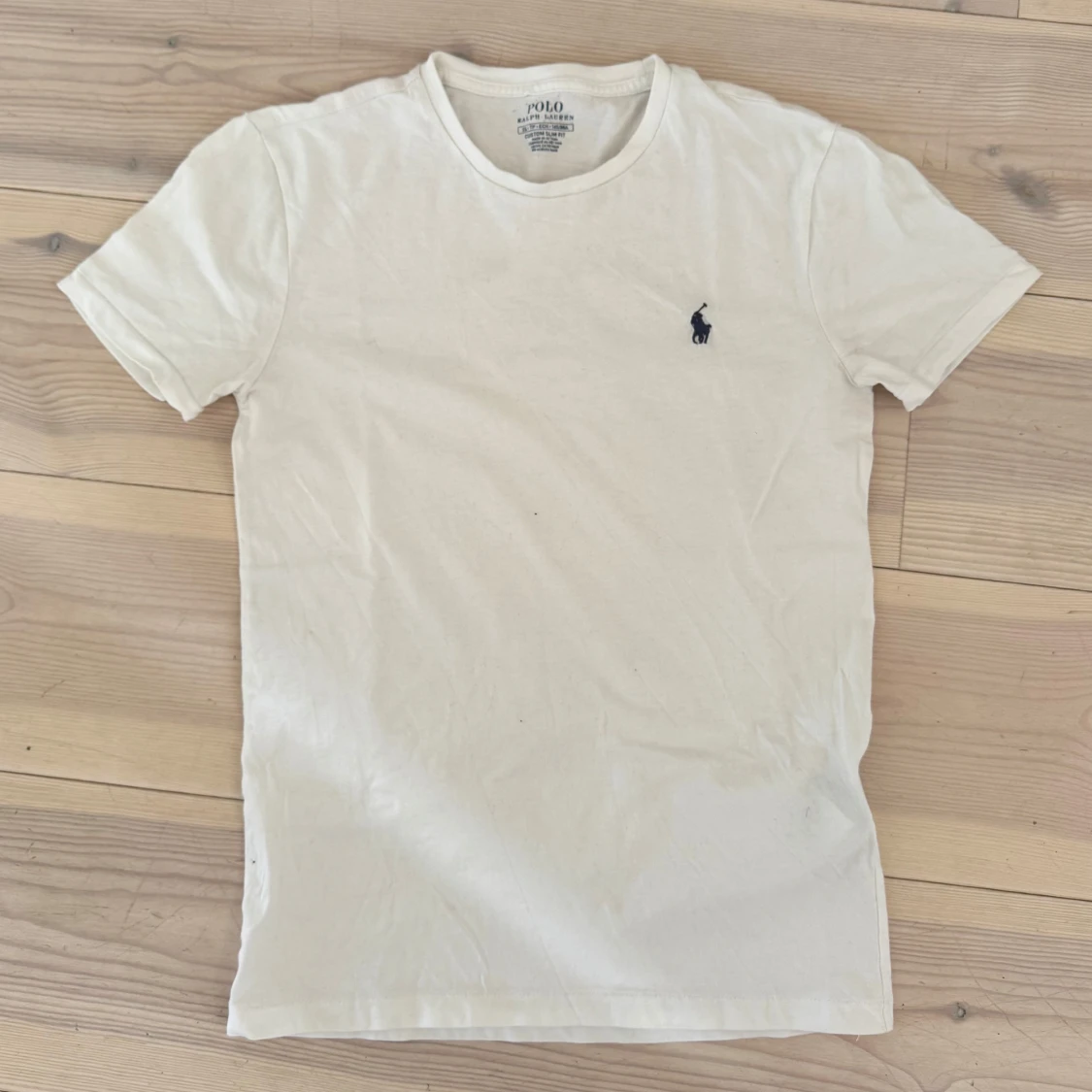 Säljer klassisk vit t-shirt från Polo Ralph Lauren i en slim fit-modell. Perfekt basplagg i mjuk bomull.