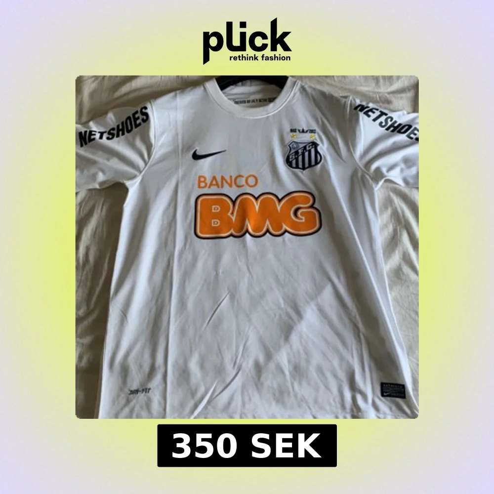 Snygg vit fotbollströja från Nike för Santos FC, med klubbmärke broderat på bröstet och svarta detaljer. Tryck med BMG och Netshoes i orange och svart. Tillverkad i lätt, ventilerande Dri-FIT-material som passar perfekt på planen.