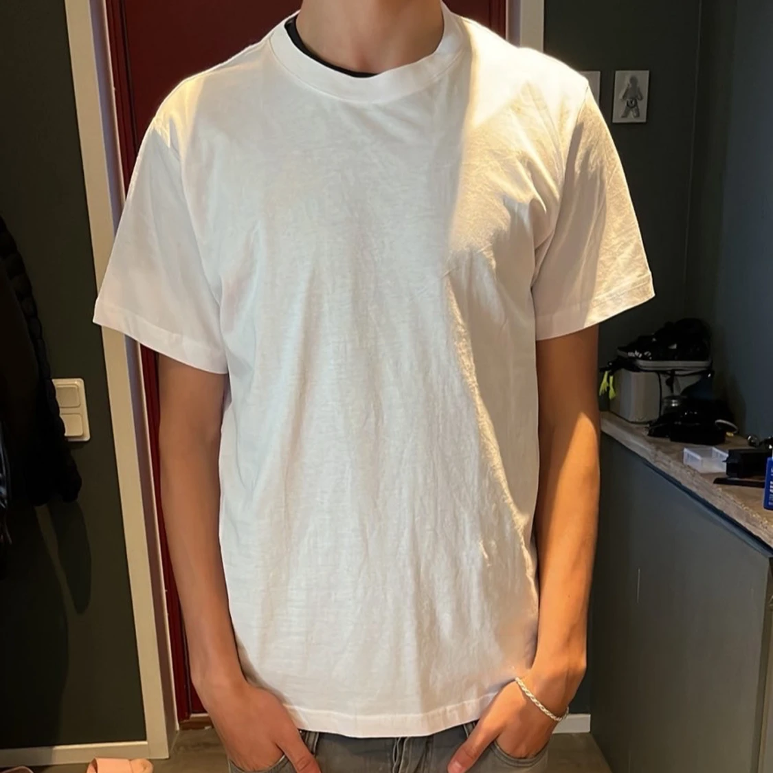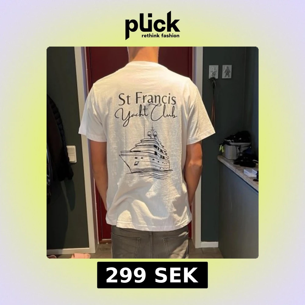 Vit t-shirt med tryck av St Francis Yacht Club och en stor yacht på ryggen. Klassisk passform med rund hals och korta ärmar. Skön och luftig i bomull, perfekt för chill dagar eller när du vill ha en clean stil.