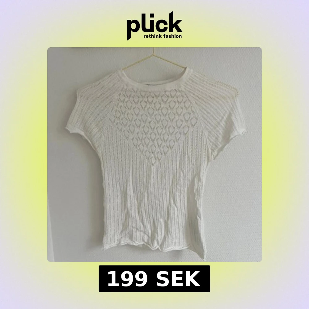 Säljer en vit stickad topp med korta ärmar och ett snyggt hålmönster framtill. Perfekt för en stilren och luftig look. Passar bra till både jeans och kjol. Hör av dig vid intresse!