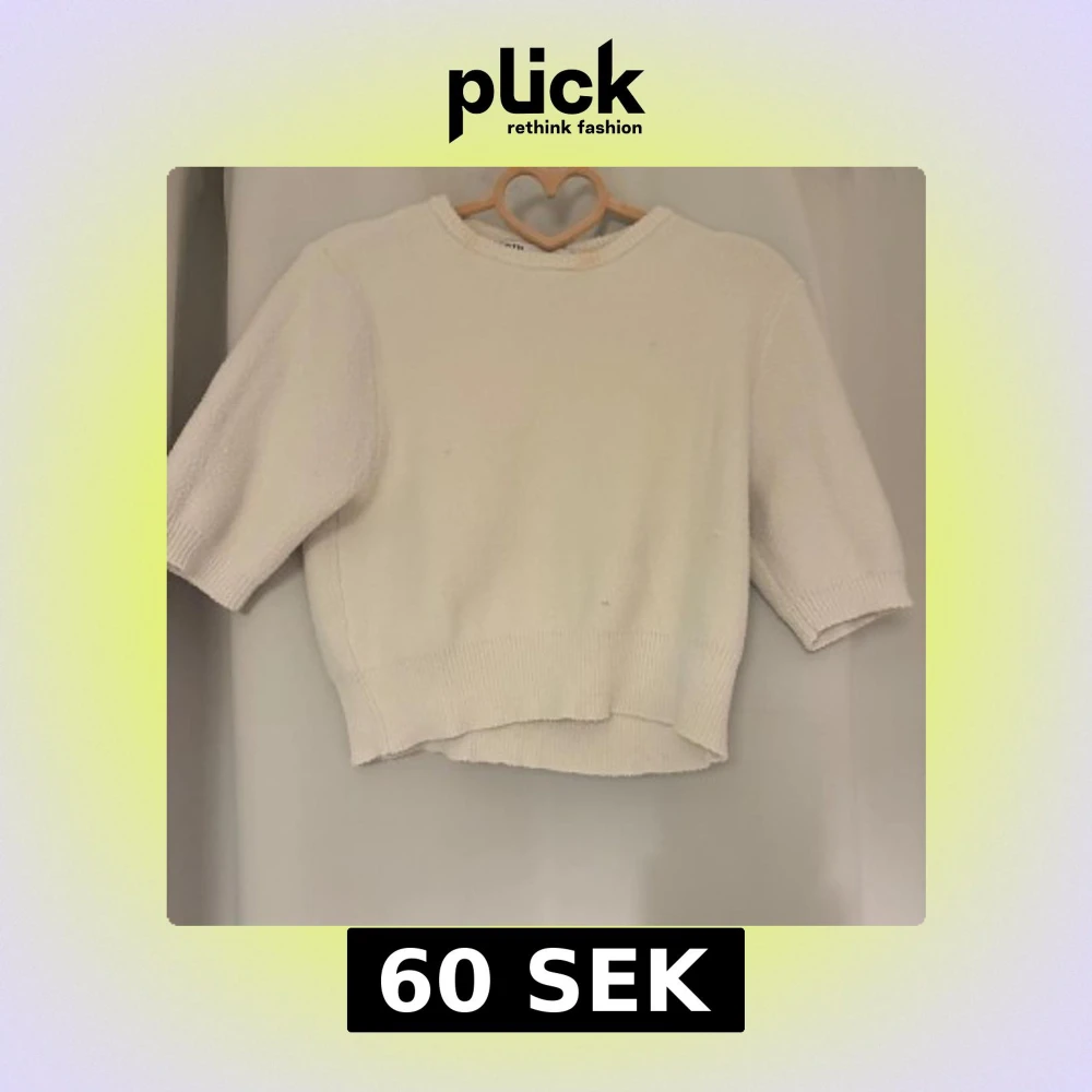 Superfin vit stickad tröja från Zara med kortare ärmar och rund hals. Tröjan har en mjuk och lite fluffig känsla, ribbade muddar och en något boxig passform. Perfekt att styla med jeans eller kjol för en clean look.