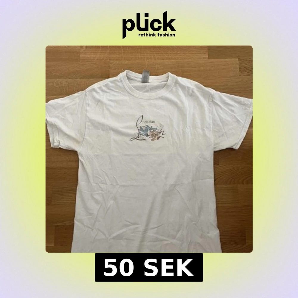 Vit t-shirt med rund hals och korta ärmar. På bröstet finns ett litet tryck med texten 'Christian Livin' och motiv i pastellfärger. Skön och enkel modell i mjuk bomull, perfekt för en chill look.