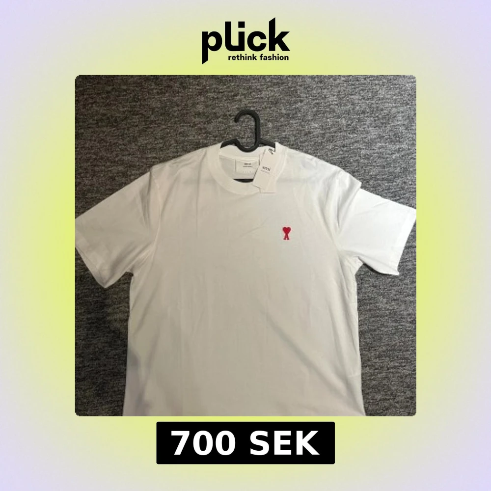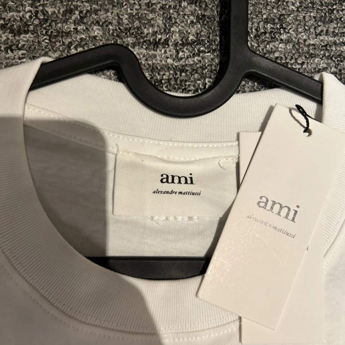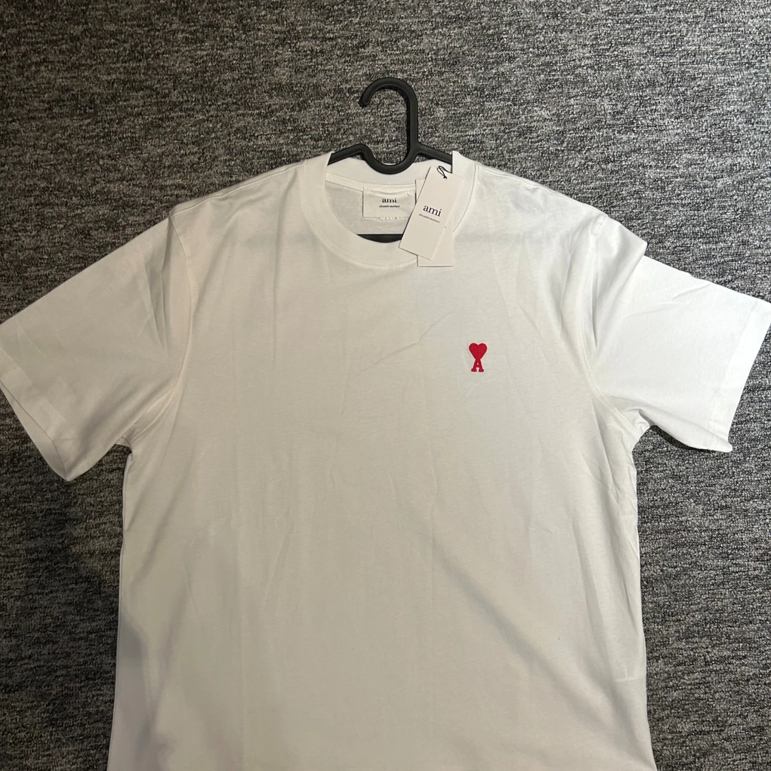 Vit t-shirt från Ami Alexandre Mattiussi med klassisk passform och korta ärmar. På bröstet finns ett broderat rött hjärta med bokstaven A. Tillverkad i mjuk bomull och har rund halsringning. Perfekt för en clean och stilren look.
