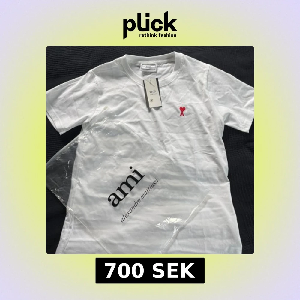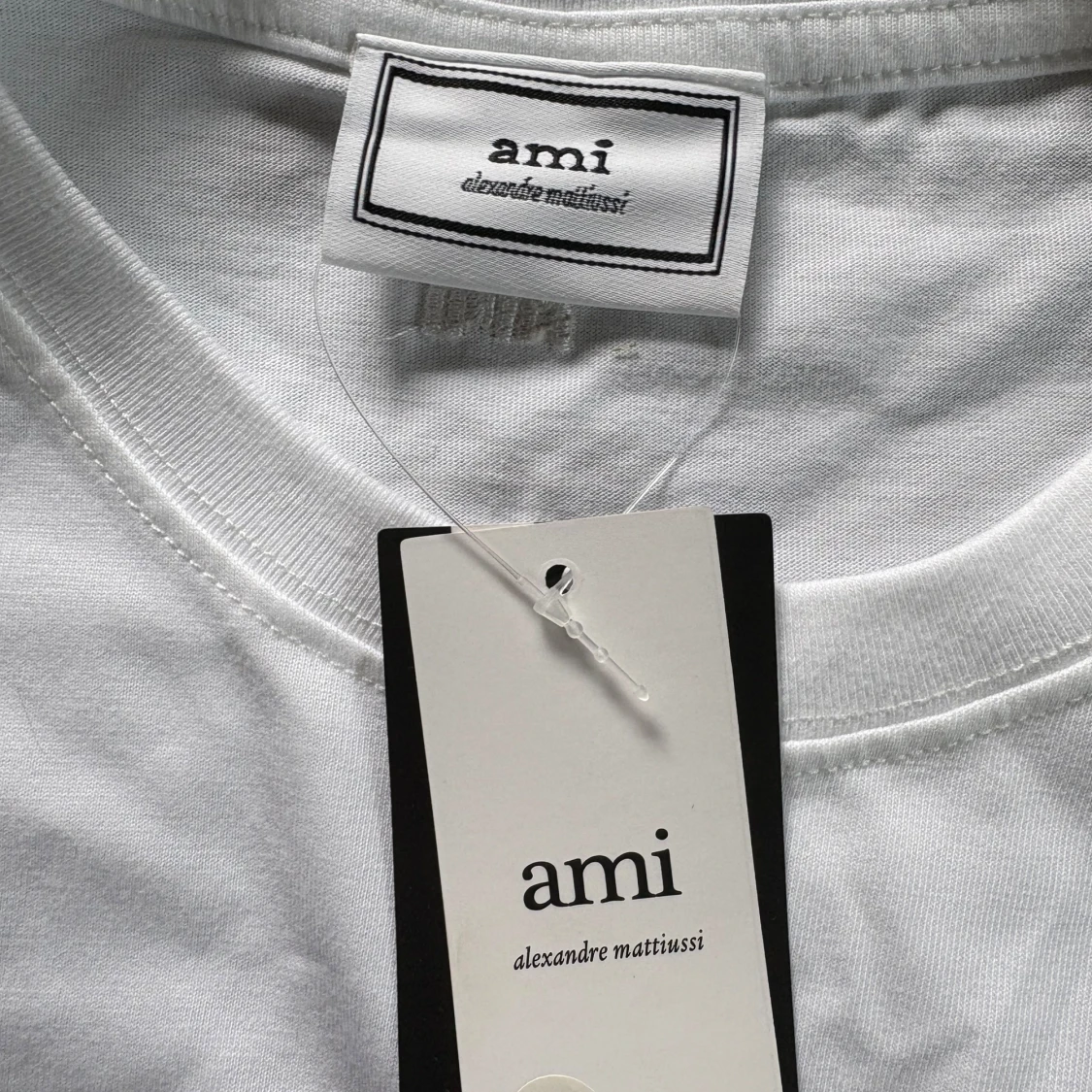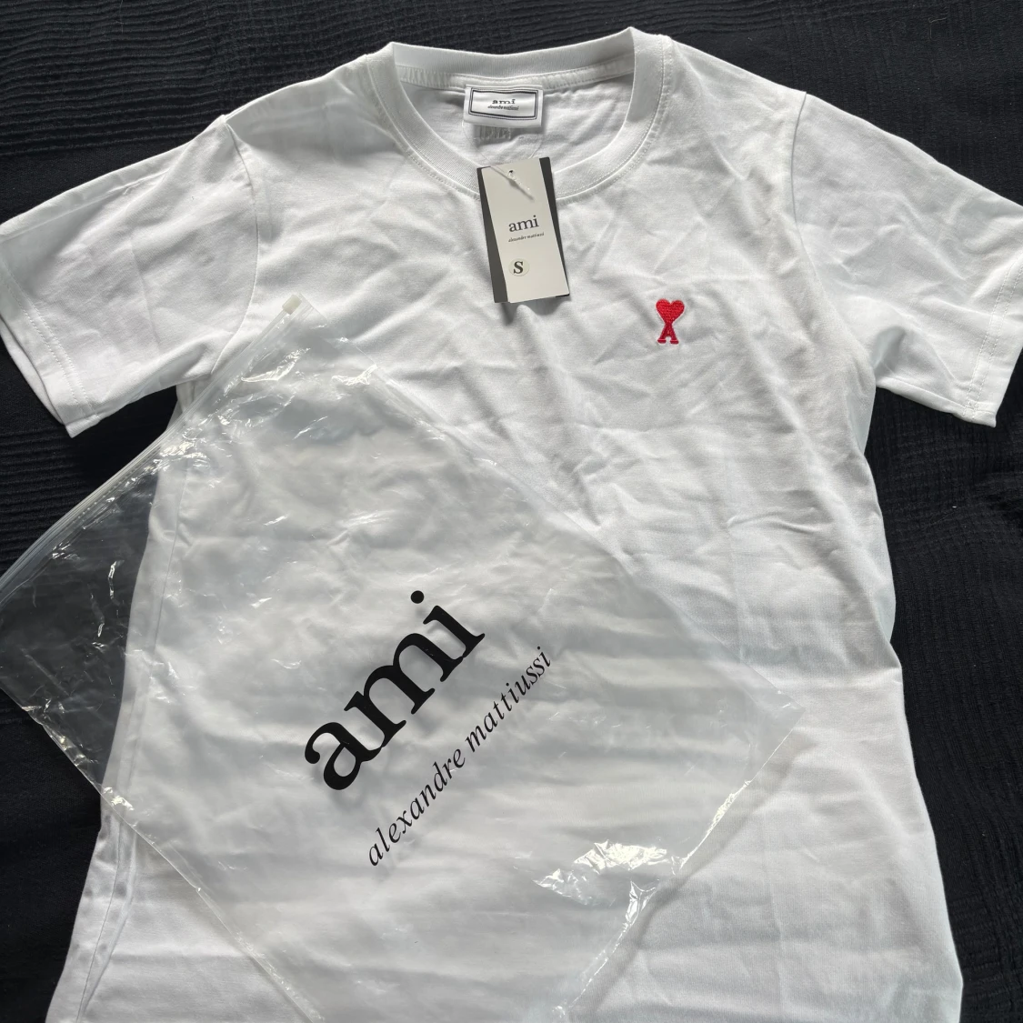 Vit t-shirt från Ami Paris. Storlek S. Nypris 1500kr🥰Pris kan diskuteras. Prislapp är kvar! Aldrig använd!