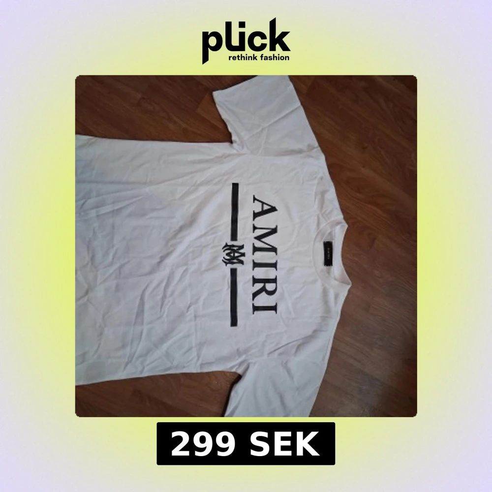 Vit t-shirt från Amiri med svart logotyptryck framtill och klassisk rund halsringning. T-shirten är i bomull och har korta ärmar. Enkel och clean design som passar perfekt till jeans eller shorts. Sitter tyvärr M-L