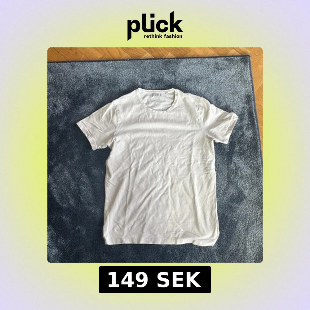 En klassisk vit t-shirt från Bläck i storlek M. T-shirten har rund hals och korta ärmar, tillverkad i mjuk bomull som känns skön mot huden. Perfekt enkel stil och passar till allt. Snygg att matcha med jeans eller shorts.