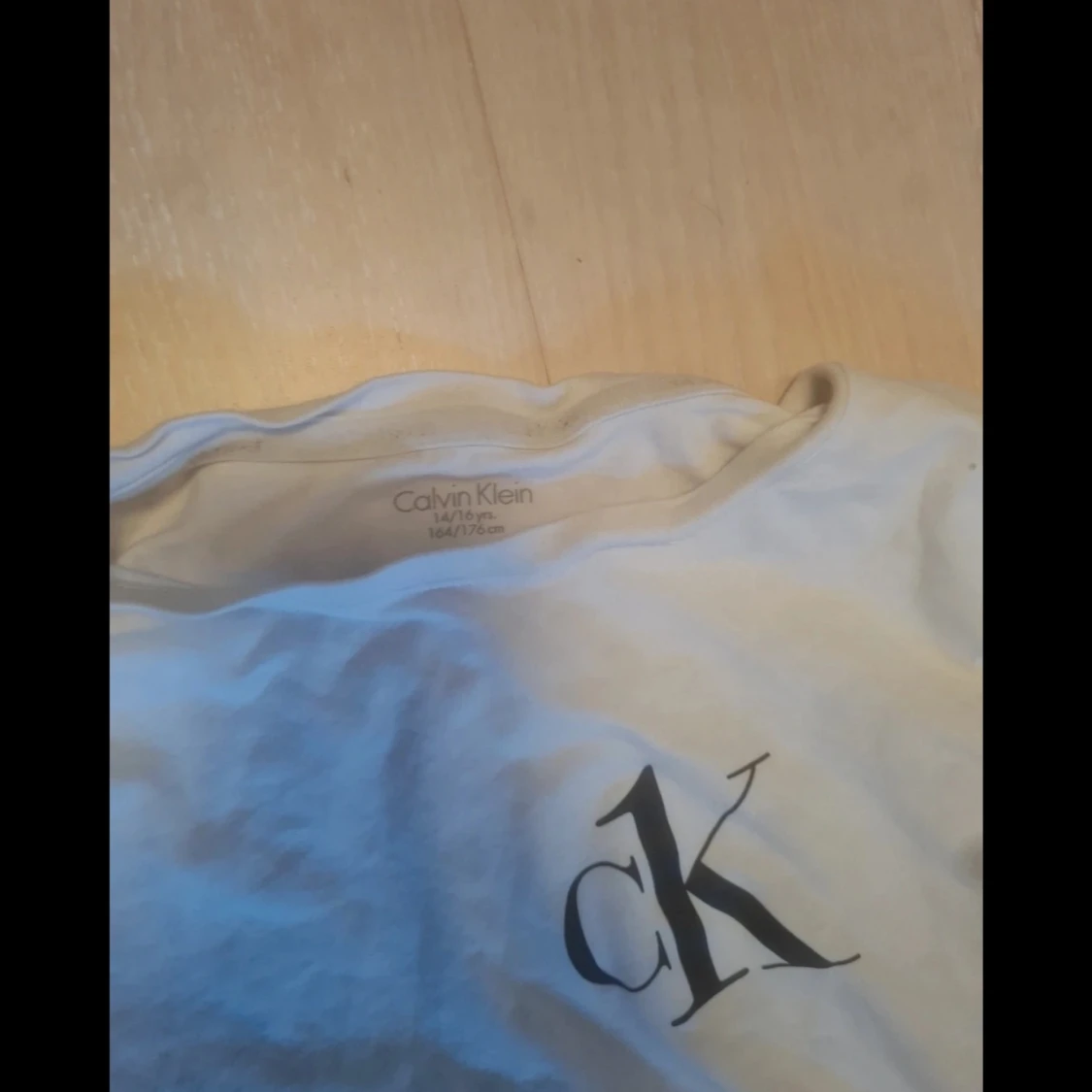 Vit t-shirt från Calvin Klein med klassisk svart CK-logga på bröstet. Enkel och clean design med rund hals och korta ärmar. Perfekt för dig som gillar stilrena plagg och vill ha något som funkar till det mesta. Passar S