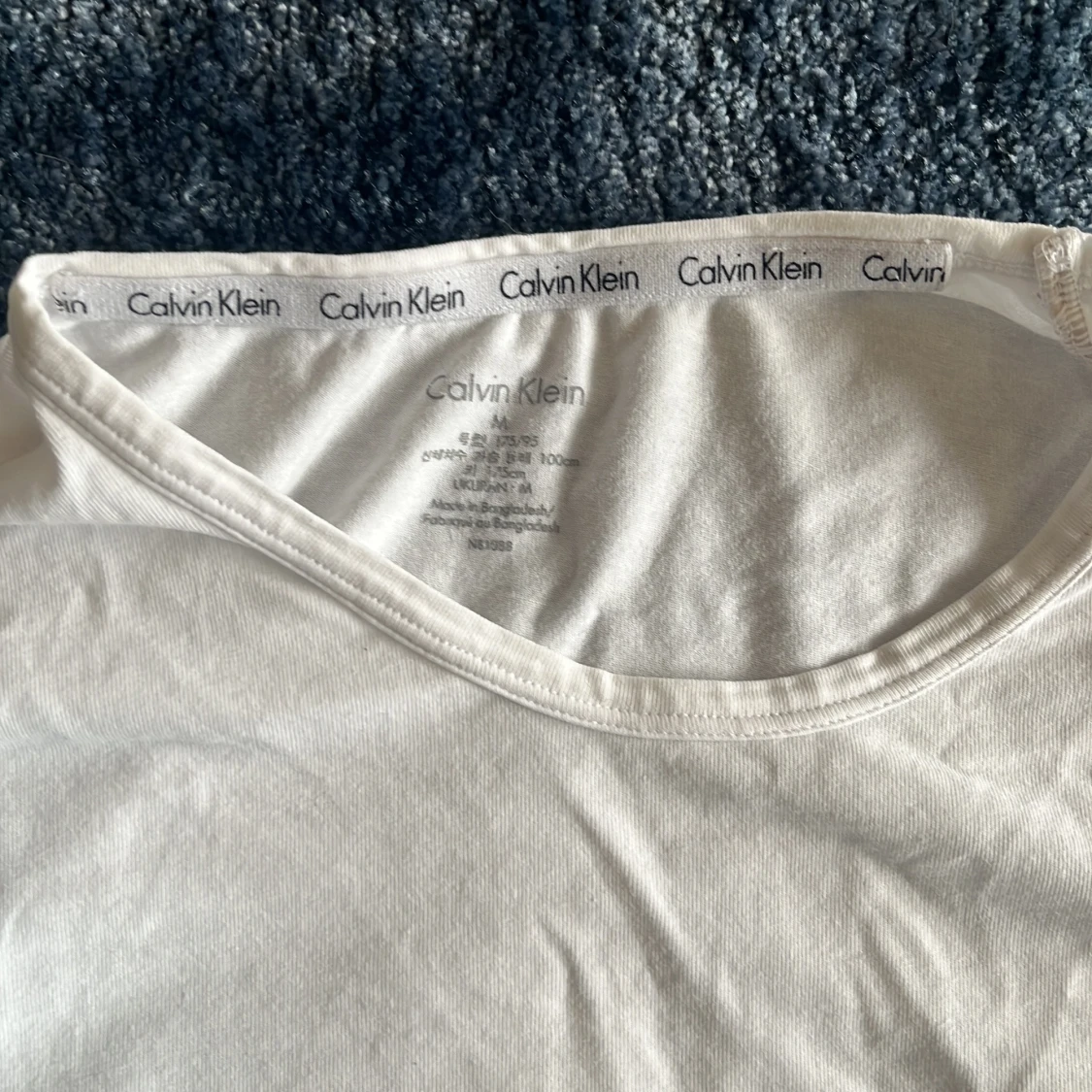 Snygg vit t-shirt från Calvin Klein med klassisk rund hals och diskret logga på insidan av kragen. Tillverkad i mjuk bomull som känns skön mot huden. Perfekt för dig som gillar stilrena och enkla plagg med premiumkänsla.