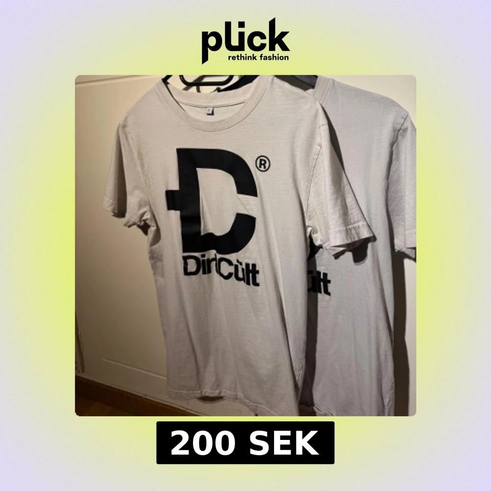 Säljer en vit t-shirt från DirtCult med stort svart tryck på framsidan. Man kan köpa båda tröjorna för 300kr och båda är i storlek S, ena tröjan så är trycket lite bort nött men annars så är dom i bra skick.