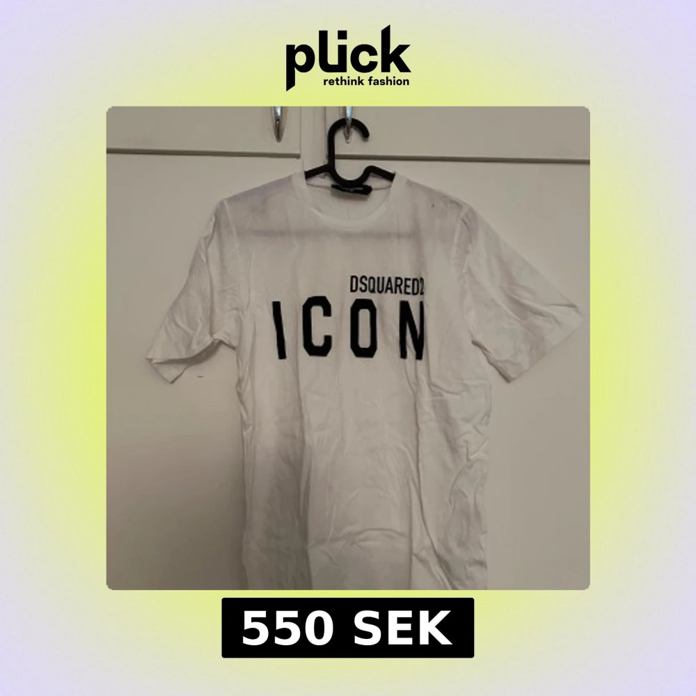 Vit t-shirt från Dsquared2 med svart text 'ICON' och logga på bröstet. Klassisk passform och rund halsringning. Perfekt för en stilren och trendig look.