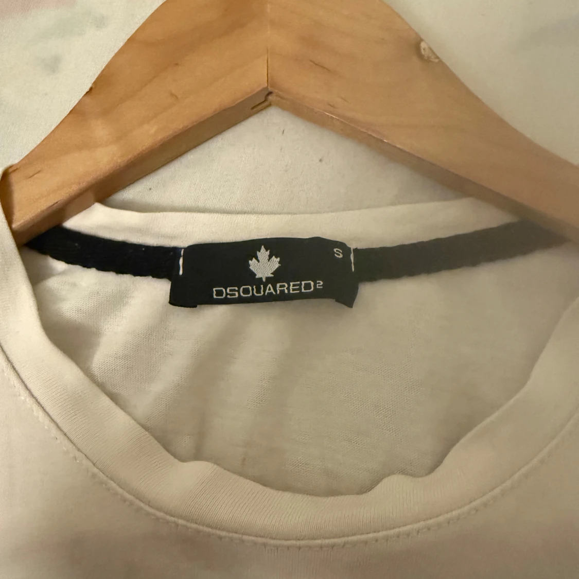 Snygg vit t-shirt från Dsquared2 med ett rött lönnlöv och svart text på bröstet. Perfekt för en stilren och avslappnad look.
