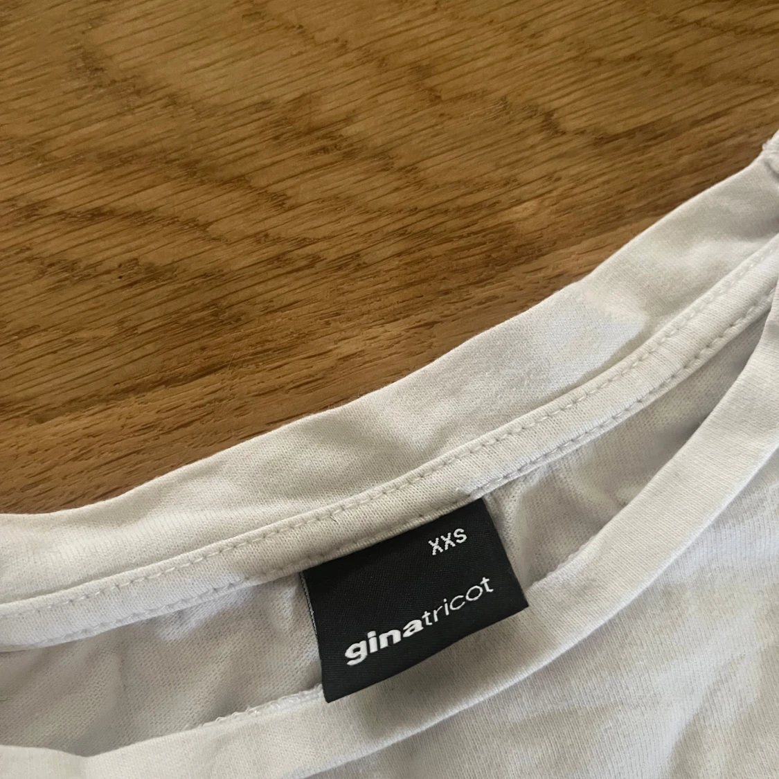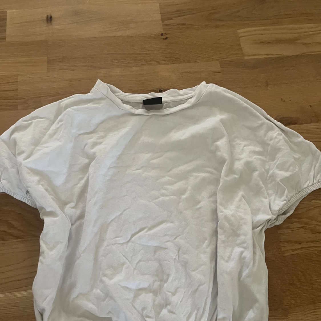 En basic vit t-shirt från Gina Tricot i storlek XXS. T-shirten har rund halsringning och korta ärmar med lätt rynk vid ärmslutet. Tillverkad i mjuk bomull, perfekt för en clean och enkel look.