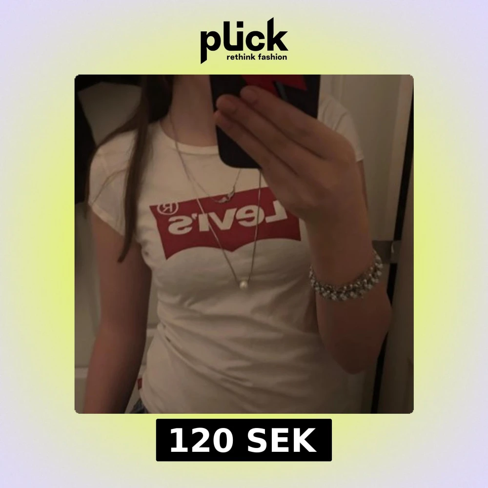 Säljer en klassisk vit t-shirt från Levi's med det ikoniska röda logotyptrycket på bröstet. T-shirten har en rund halsringning och korta ärmar. Perfekt för en avslappnad stil.