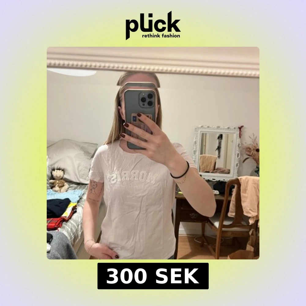 Säljer en ljus rosa t-shirt från Morris med texttryck på framsidan. T-shirten har en rund halsringning och korta ärmar. Perfekt för en avslappnad stil.