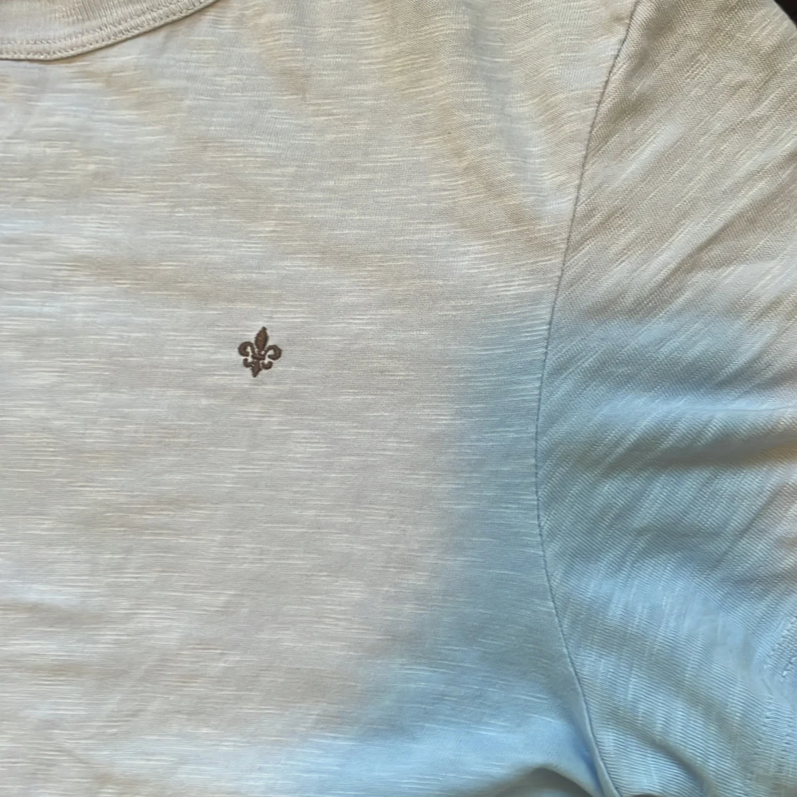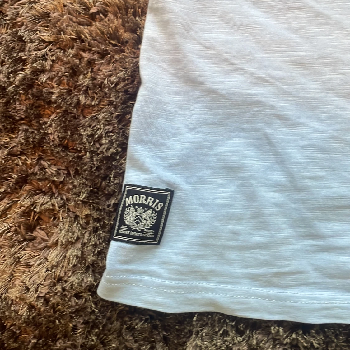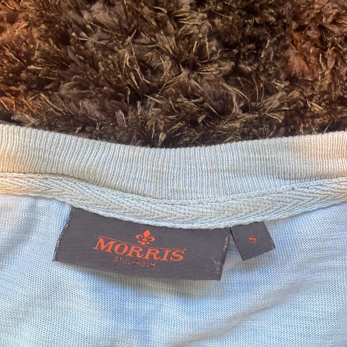 Ljusblå t-shirt från Morris Stockholm i bomull med klassisk passform. T-shirten har rund hals, liten broderad logga på bröstet och en snygg patch nertill. Perfekt basic med stilrena detaljer och skön känsla. Storlek S men sitter som M. Har bara använt den nån gång så nästan helt ny.