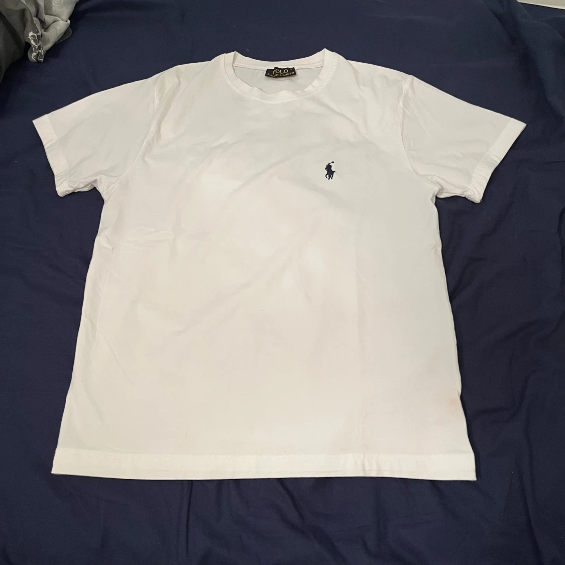 Klassisk vit t-shirt från Polo Ralph Lauren med den ikoniska lilla marinblå polospelaren broderad på bröstet. T-shirten är kortärmad, har rund hals och är tillverkad i mjuk bomull. Perfekt basic-plagg med snygg passform.
