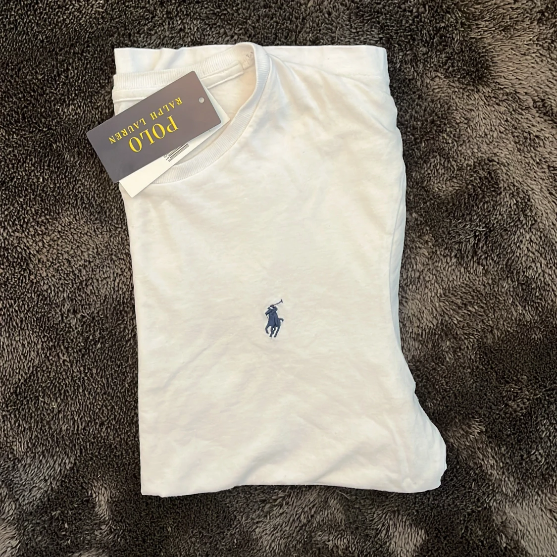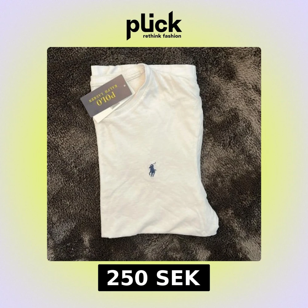 Vit t-shirt från Polo Ralph Lauren med klassisk rund hals och liten broderad logga i blått på bröstet. Enkel och stilren design, perfekt till jeans eller shorts.
