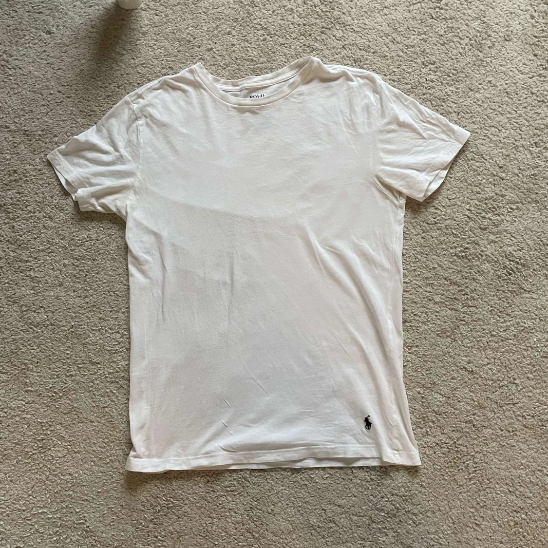 Säljer en klassisk vit t-shirt från Ralph Lauren. Den är tillverkad i mjuk bomull och har en liten broderad logga nertill. Perfekt för en stilren och avslappnad look.