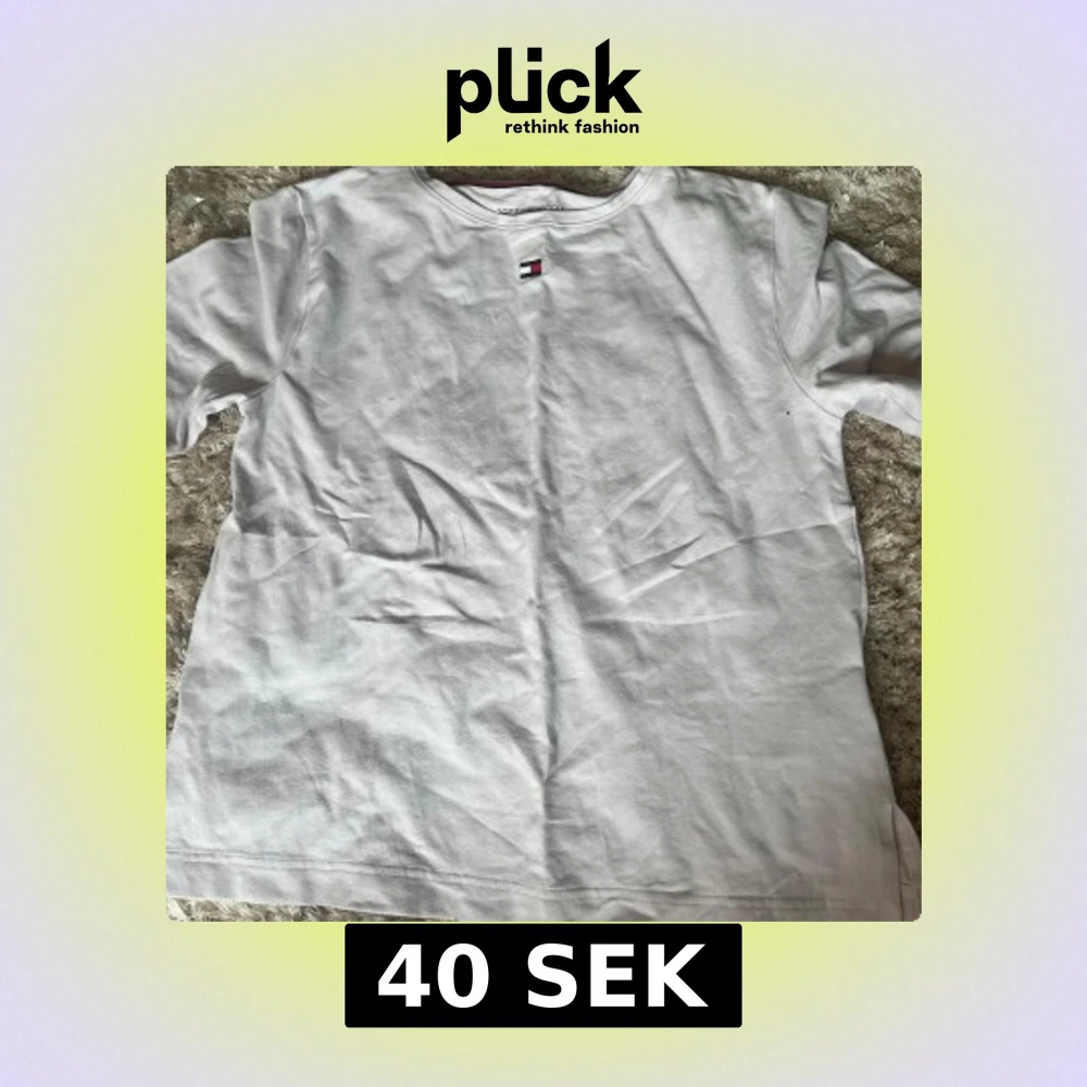 Vit t-shirt från Tommy Hilfiger med klassisk rund hals och broderad logga på bröstet. Tillverkad i mjuk bomull och har en enkel, clean design som passar till allt. Perfekt för dig som gillar stilrena och tidlösa plagg. Köpt på sellpy men jag har aldrig använt den men den är väldigt använd🤍