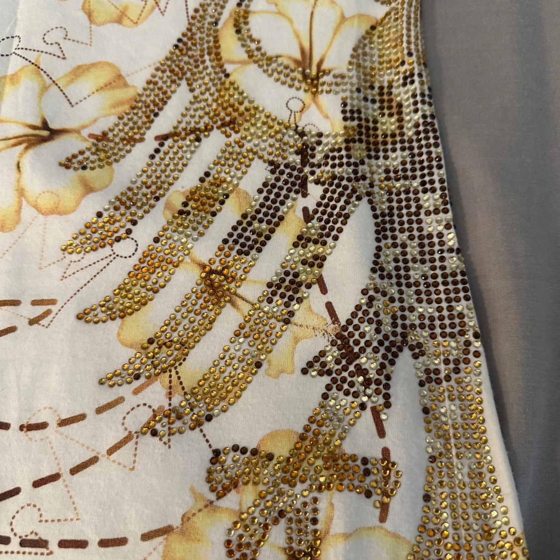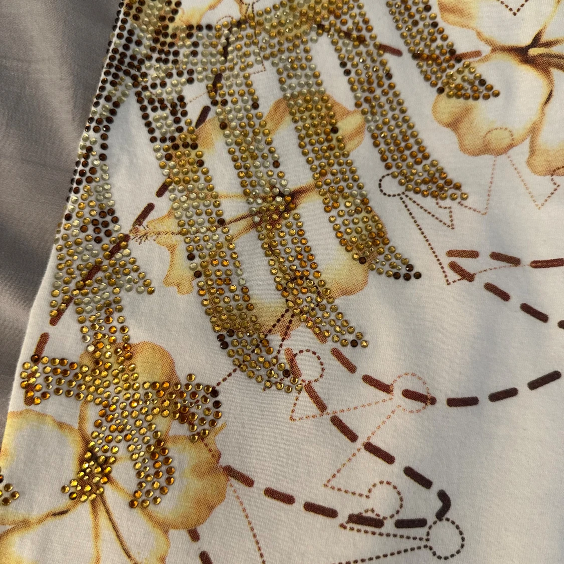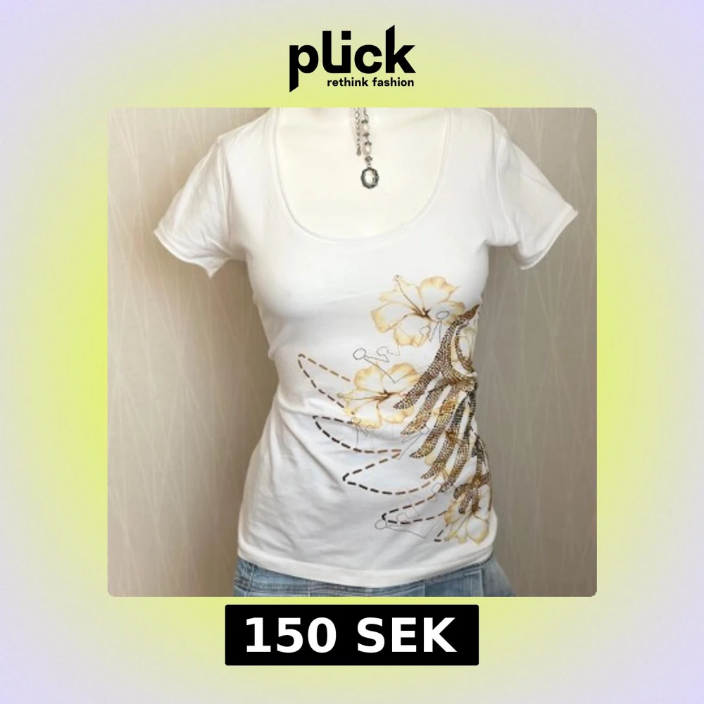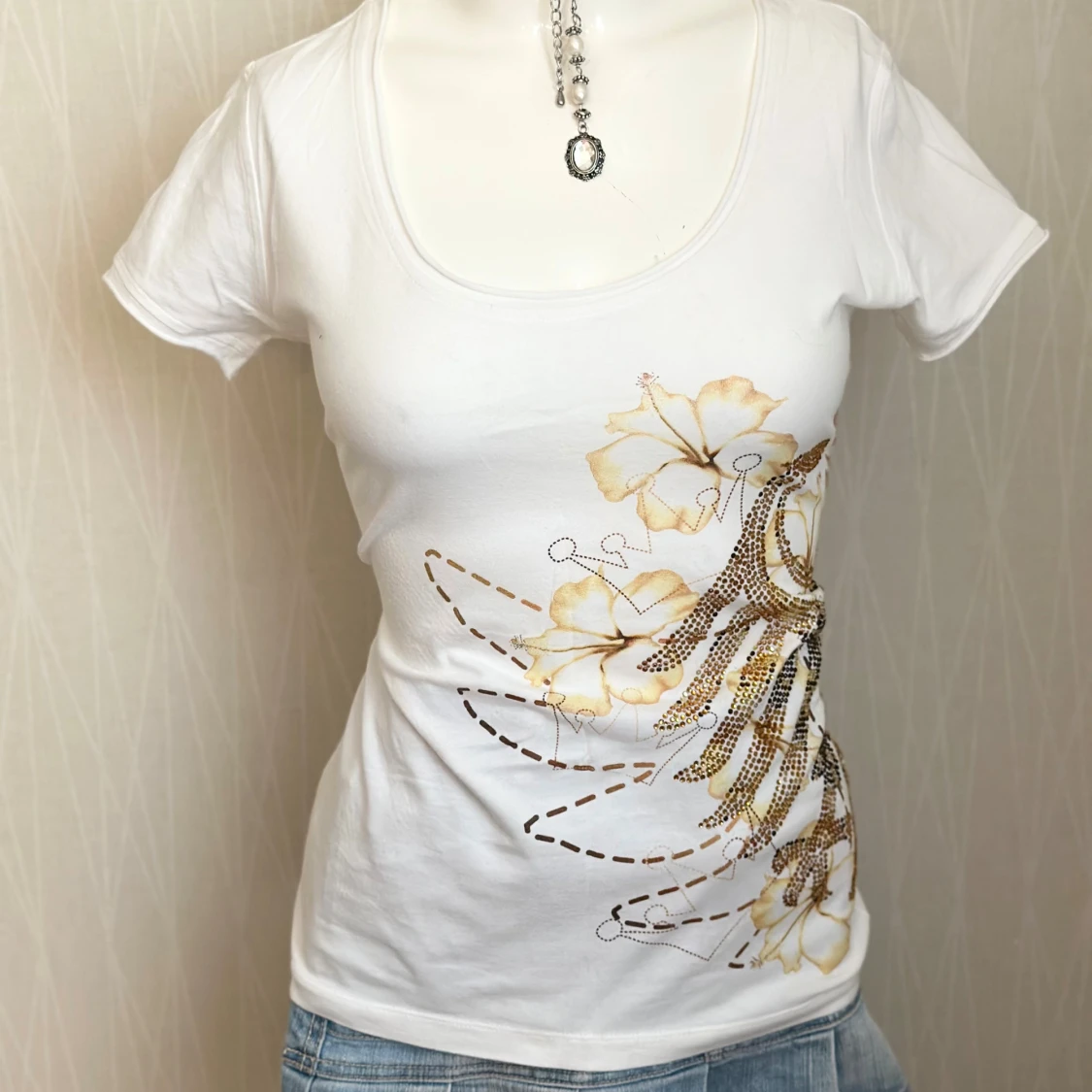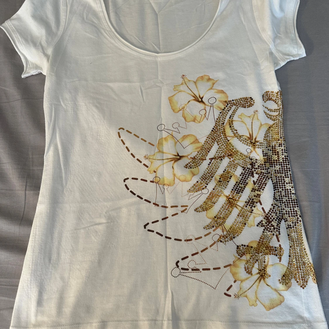 Vit t-shirt med blommor och paljetter