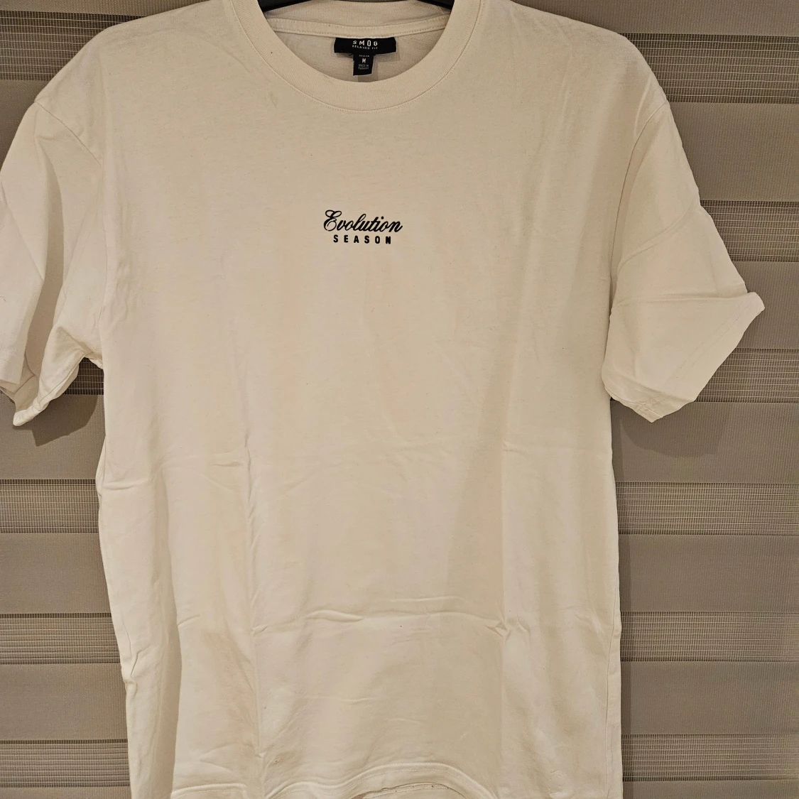 Vit t-shirt från Smog i relaxed fit med trycket 'Evolution Season' fram och ett stort, färgglatt vingmotiv i blått och grönt på ryggen. Rund hals och korta ärmar. Tillverkad i mjuk bomull, perfekt för dig som gillar unika prints och streetstyle.