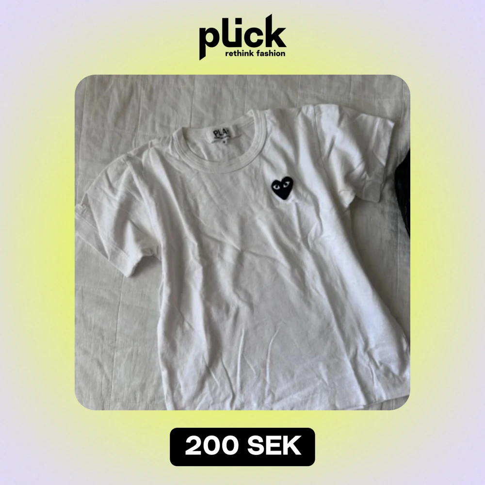 Säljer en stilren vit t-shirt från PLAY commes des garcons med ett svart hjärta på bröstet. Perfekt för en casual look och passar till allt! T-shirten är i bra skick och redo för nya äventyr.