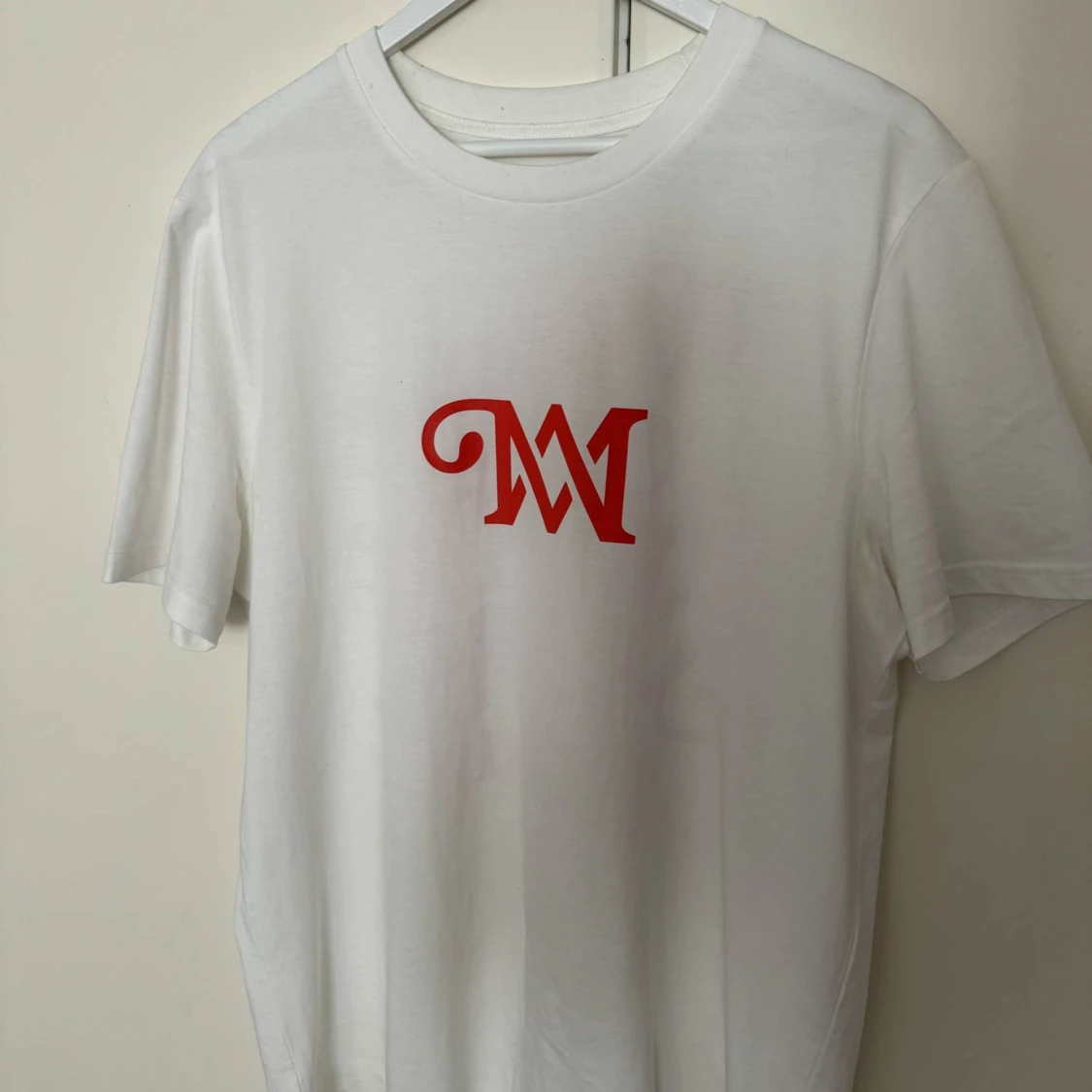 Vit t-shirt med rött M-tryck framtill och stor röd text på ryggen: 'We Are Not The Same Tour Part 2'. Klassisk passform och rund halsringning. Perfekt för dig som gillar statement-plagg och snygga tryck.