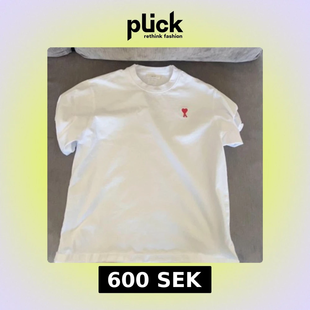 Säljer en stilren vit t-shirt med ett litet rött hjärta broderat på bröstet. Perfekt för en enkel och snygg look. T-shirten har korta ärmar och en klassisk passform.