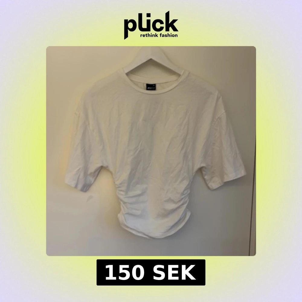 Vit t-shirt från Gina Tricot med korta ärmar och rund halsringning. T-shirten har en snygg rynkdetalj på sidorna som ger en cool och modern look. Tillverkad i mjuk bomull, perfekt för en avslappnad stil.