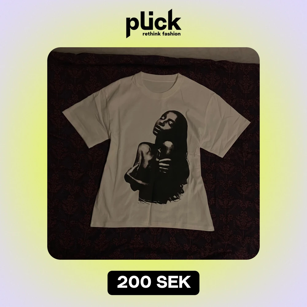 Assnygg T-shirt med ”Sade” tryck! Råka beställa fel storlek så måste tyvärr bli av med den (helt ny) 💔storleken är M och materialet är gjort av 100% bomull! Skriv jätte gärna om du har frågor :) <3